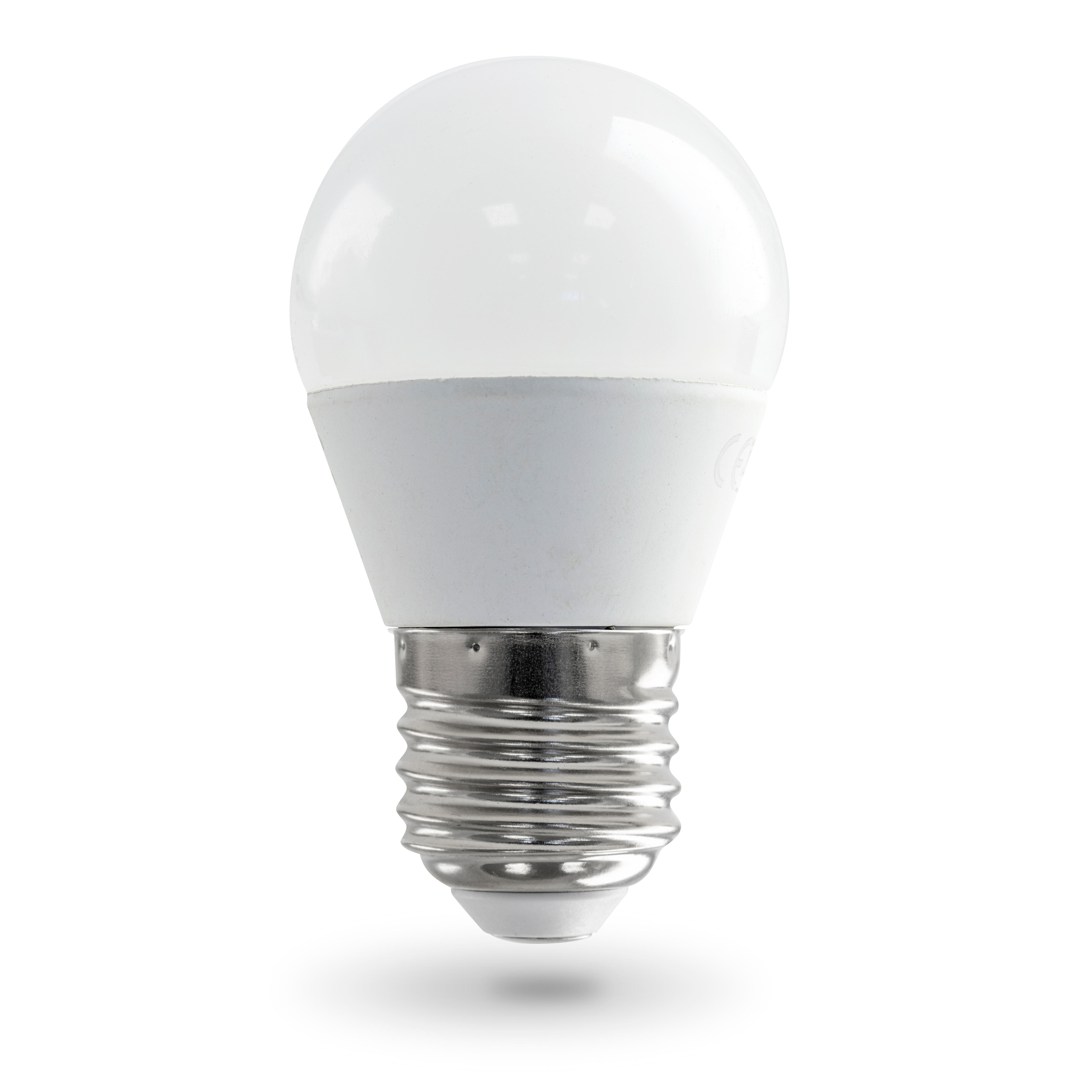 Bombilla LED esférica de 4W. Casquillo E27. Potencia lumíncia 512 lúmenes. Vida útil 15000 horas. Temperatura de color 4000ºK. Neutra. Diámetro 45mm. Largo 84mm.