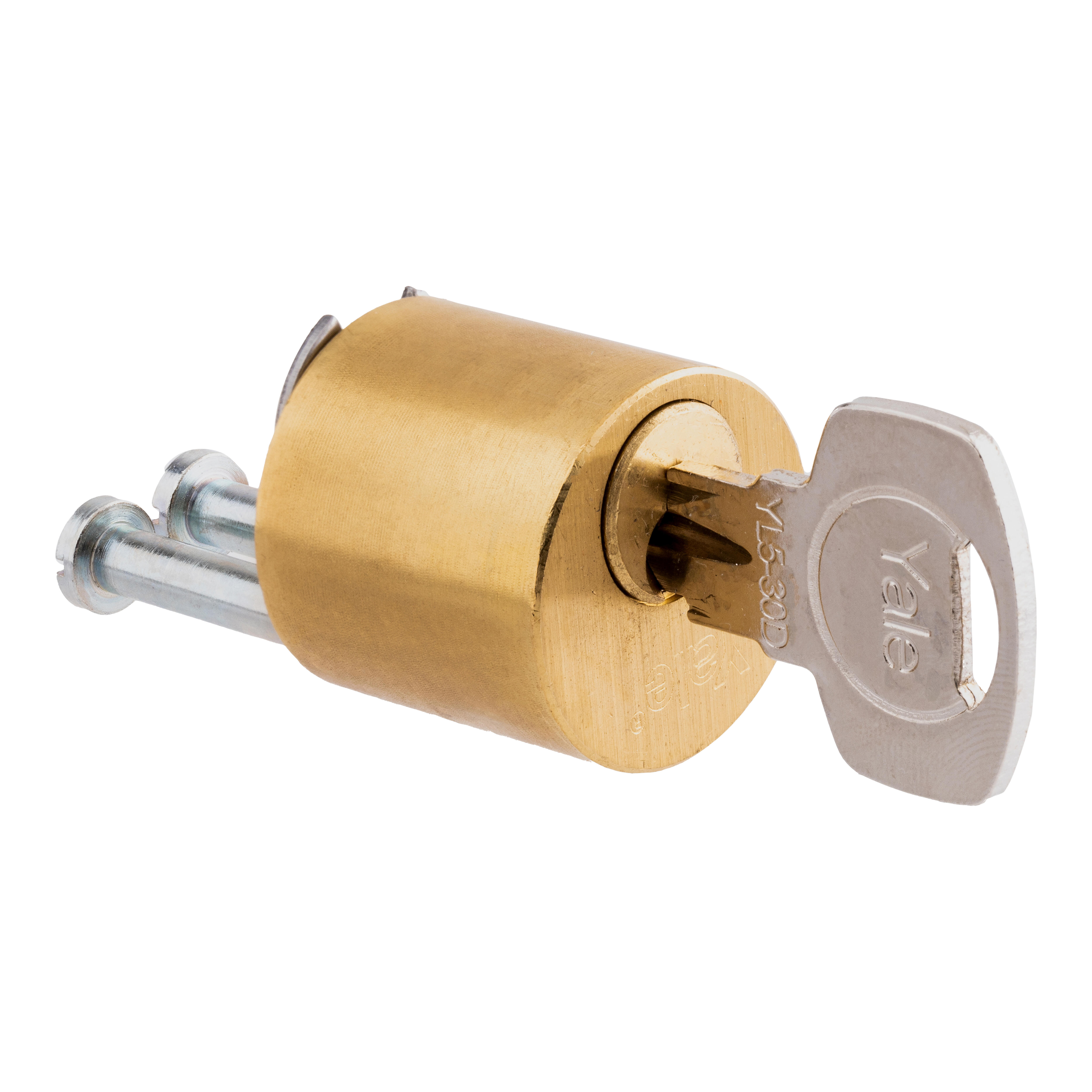 Bombín cerradura 28mm con 3 llaves YALE. Diseñado para brindar seguridad en cerraduras de 1 entrada de llave, este cilindro combina funcionalidad con un acabado en latón pulido ideal para diversas aplicaciones.