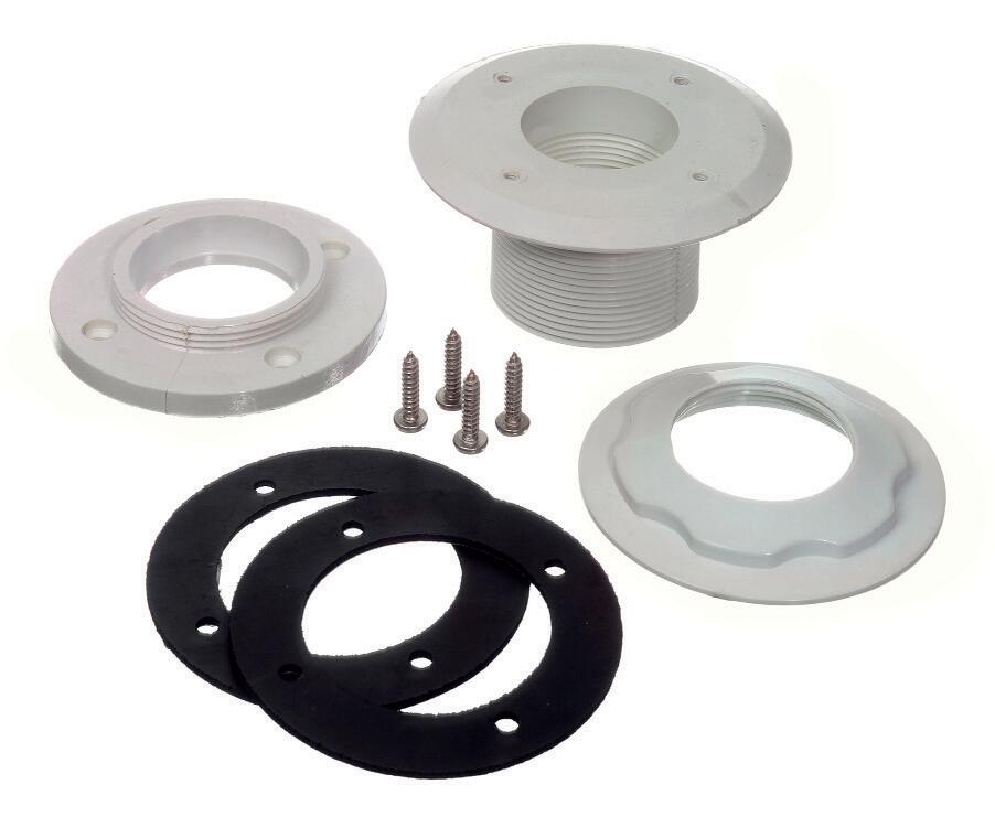 Fabricado en ABS color blanco. Incluye tornillos y juntas de goma. Rosca exterior 2".