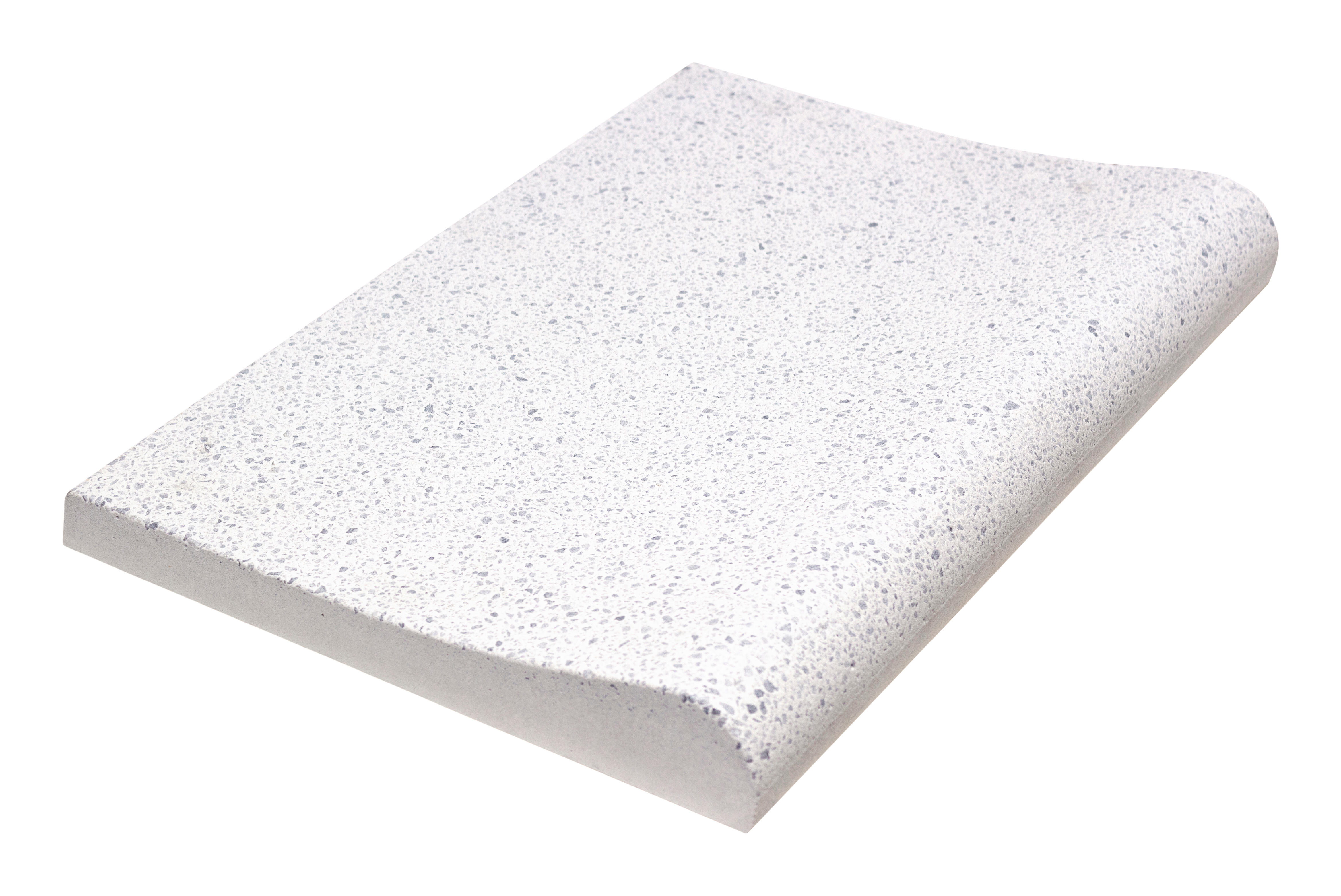 Borde de piscina antideslizante Balearis color blanco y acabado suave con textura de piedra. Recomendado para bordes de piscina con un acabado redondeado. Formato rectangular para los laterales de los bordes de piscina. Se vende por piezas de 35x50mm.