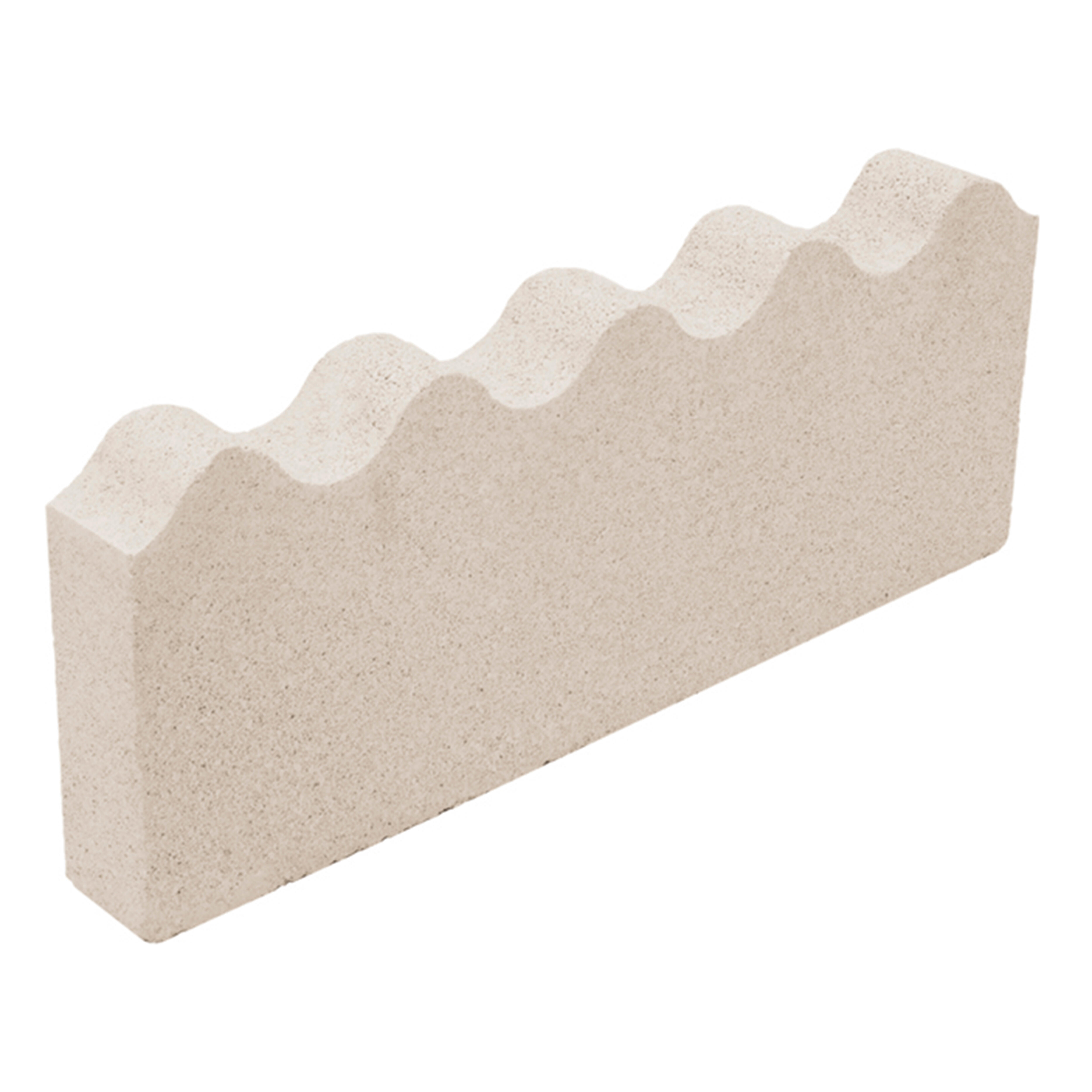 Bordillo de hormidón ondulado color blanco, para delimitar zonas terrizas o ajardinadas de otros pavimentos. Medidas: 50x20x6 cm.