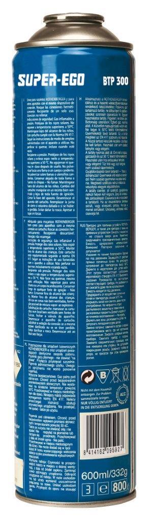 Cartucho desechable con válvula de seguridad. Se puede conectar y desconectar fácilmente. Contiene combinación 35% propano y 65% butano. Temperatura: 1.925 ºC.