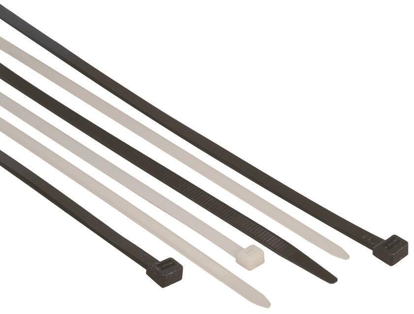 100 ud. de Brida de 4.8mm de ancho y 300mm de longitud, para fijacion de tubos y cables, de color blanco, con alta resistencia a la traccion, fabricado en poliamida, material aislante libre de halogenos para uso interior.
