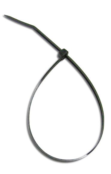 Brida de nylon. color negro. dimensiones: 7,6 x 365 mm.diametro maximo: ø 108 mm. resistencia a la traccion; 55 kgs. tª trabajo: -40ºc a 85'ºc . tª min. instalacion: -10'ºc para uso interior. Bolsa de 50uds.