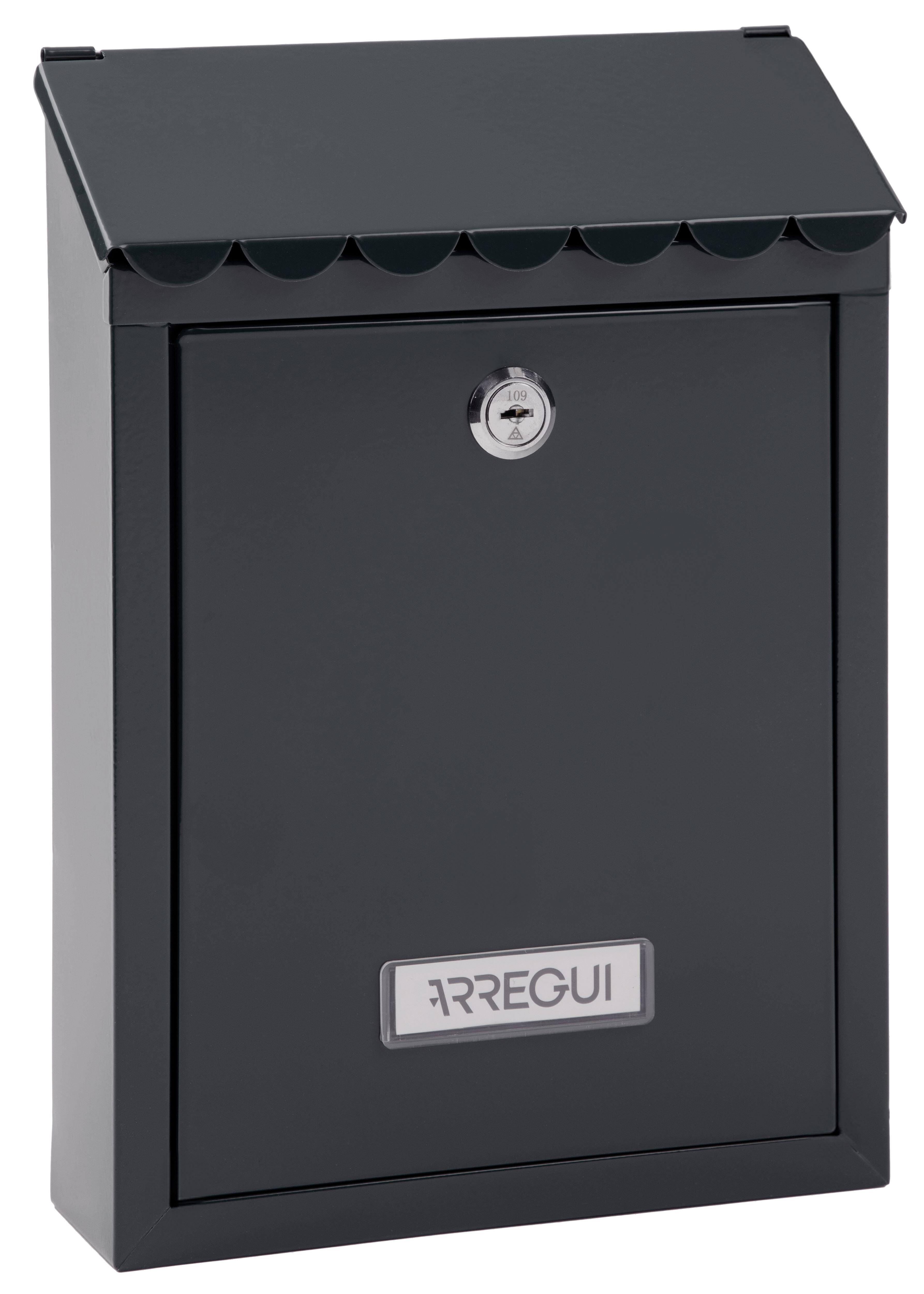 Buzón de correo de exterior negro ARREGUI. Este buzón combina funcionalidad y estilo, siendo la elección perfecta para quienes buscan un elemento decorativo y seguro para la recepción de correspondencia en el exterior de sus hogares.