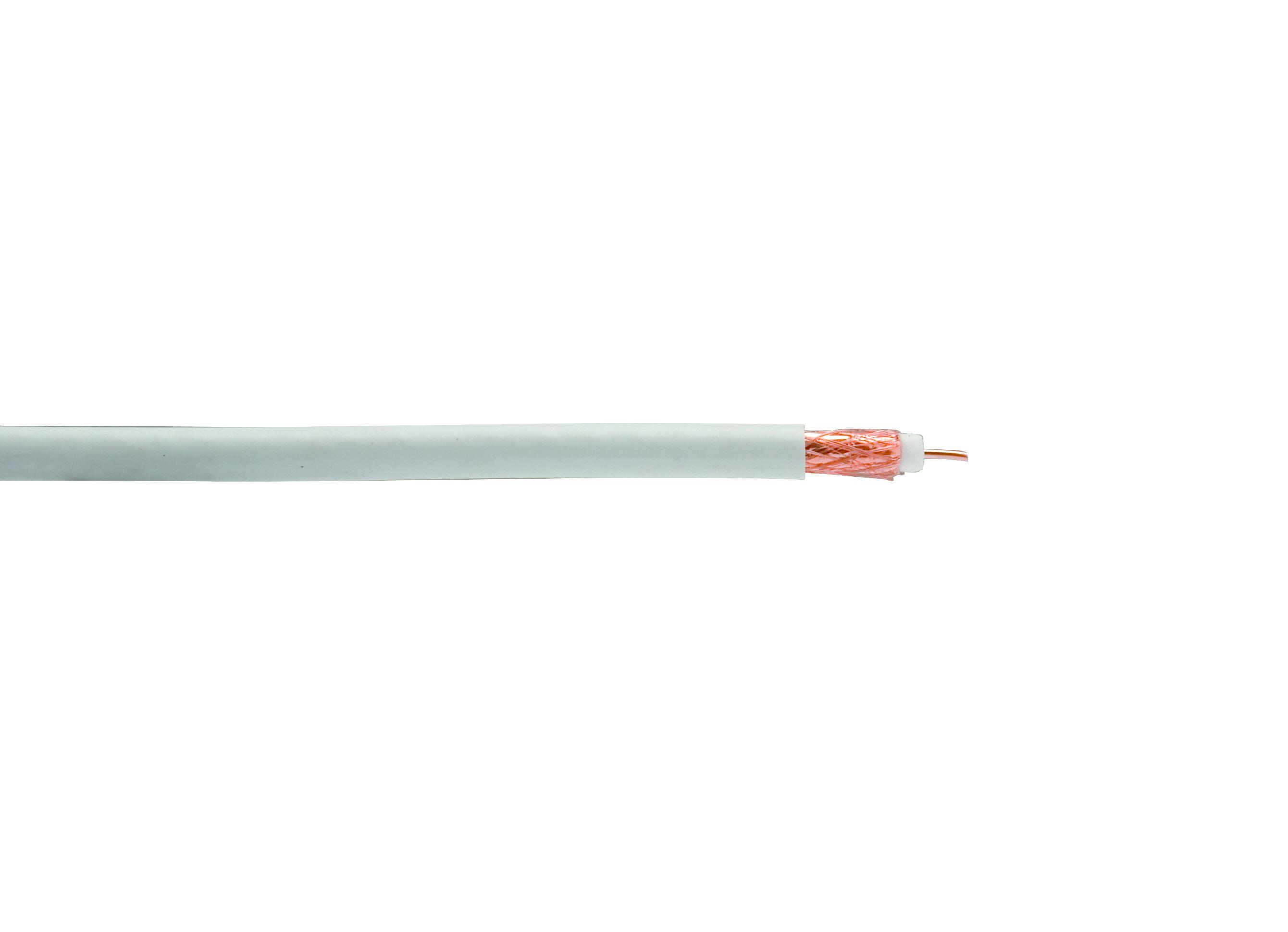 Cable coaxial DA-75 Blanco 100m. Con conductor central de CCS de 1.02mm de diámetro e impedancia 75 OHM, con blindaje doble y malla de aluminio, con cubierta de PVC, con diámetro exterior total de 6.7mm y color blanco. Cable destinado a: uso interior para uso domestico para TV Y SAT, pensado para distancias cortas.