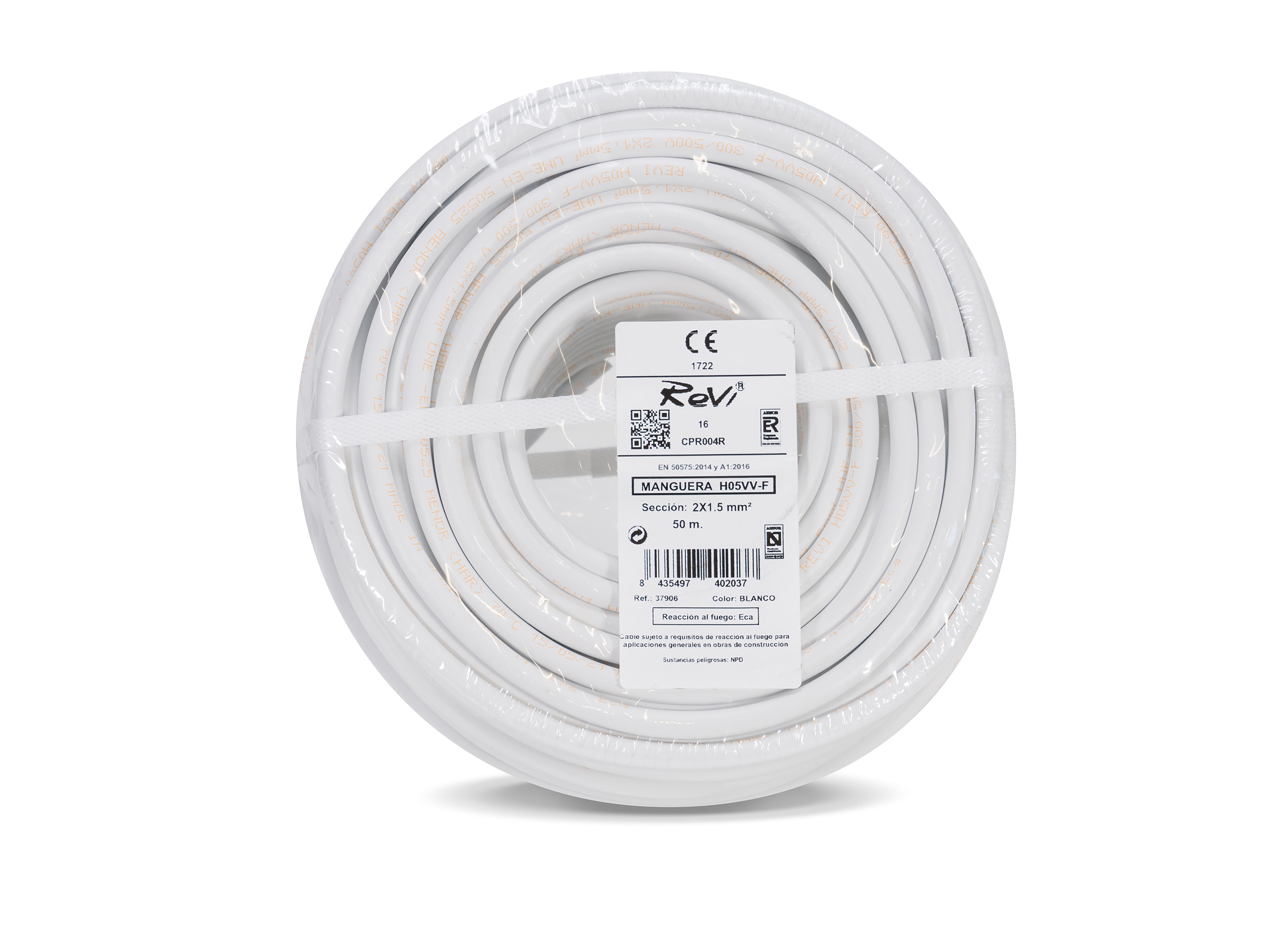 Cable eléctrico H05VV-F 2x1.5mm2 blanco 50m. Son para esfuerzos mecánicos medios (lavadoras, centrifugadoras, etc). Para aparatos domésticos, incluso en locales húmedos. Instalación en locales dmésticos, cocinas y oficinas.
