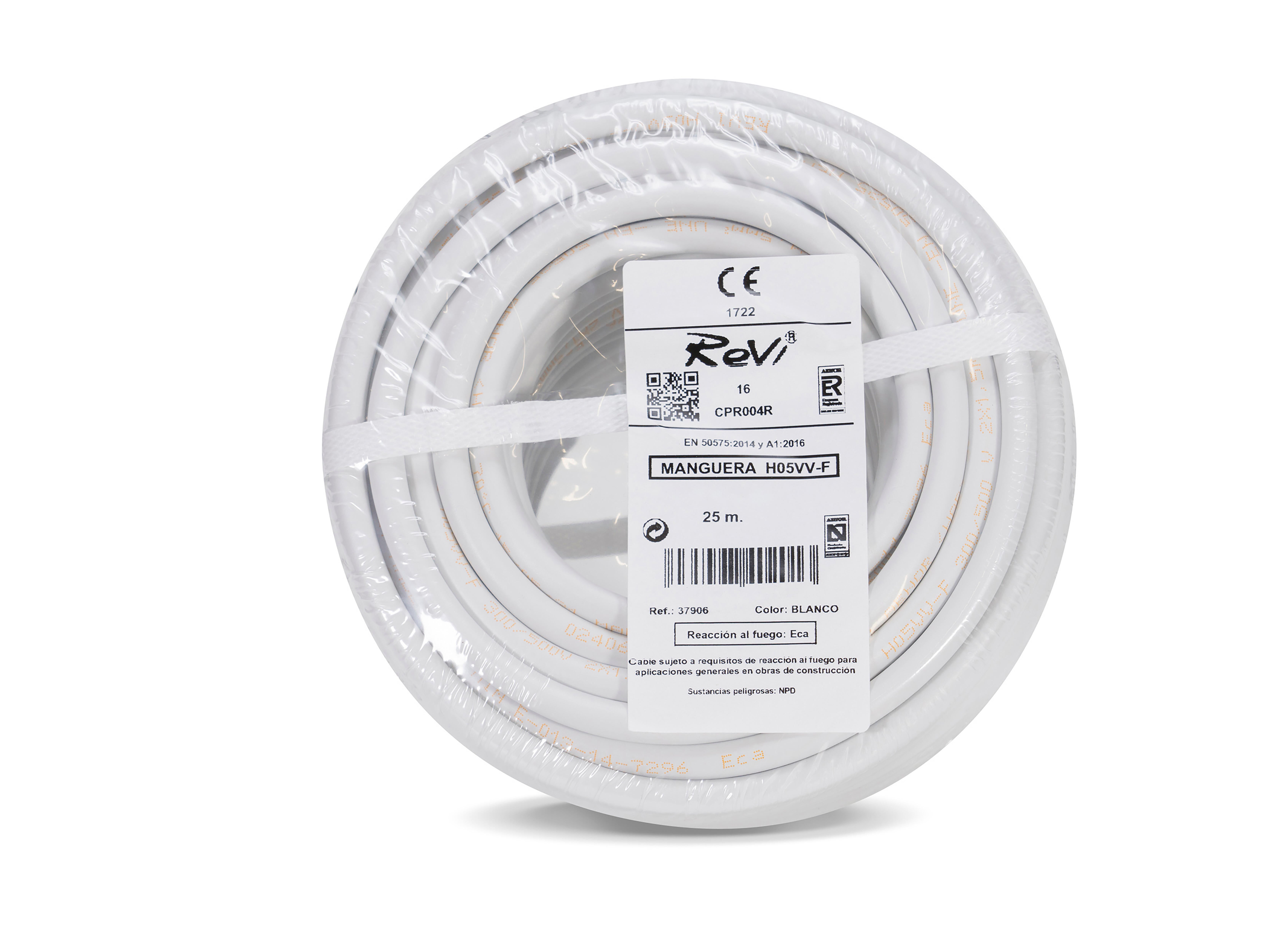 Cable eléctrico H05VV-F 3G 2.5mm2 blanco 25m. Para aparatos domésticos, incluso en locales húmedos. Estos cables son para esfuerzos mecánicos medios (por ejemplo para lavadoras, centrifugadoras y refrigeradores). Con conductor de cobre flexible de sección 3 hilos de 2.5mm2. Cable destinado a instalación en locales domésticos, cocinas y oficinas.