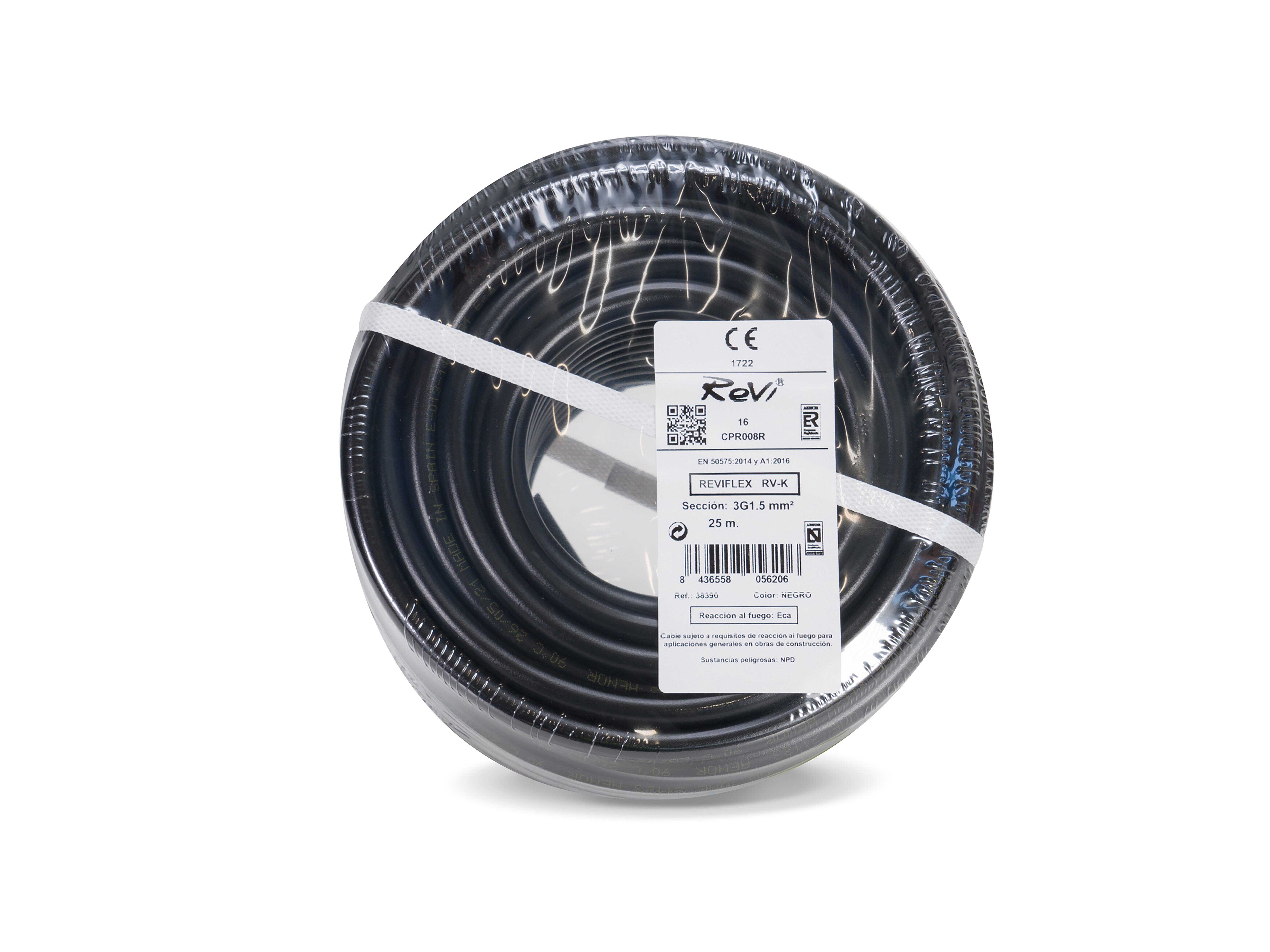 Cable eléctrico RV-K 3G 1.5mm2 negro 25m. Cable destinado a: transporte y distribución de energía eléctrica en instalaciones fijas protegidas o no. Adecuados para instalaciones interiores y exteriores, sobre soportes, al aire, en tubos o enterrados.Con una clasificación CPR: eca, y una reacción al fuego de no propagador de la llama de acuerdo con UNE-EN60332-1-2.