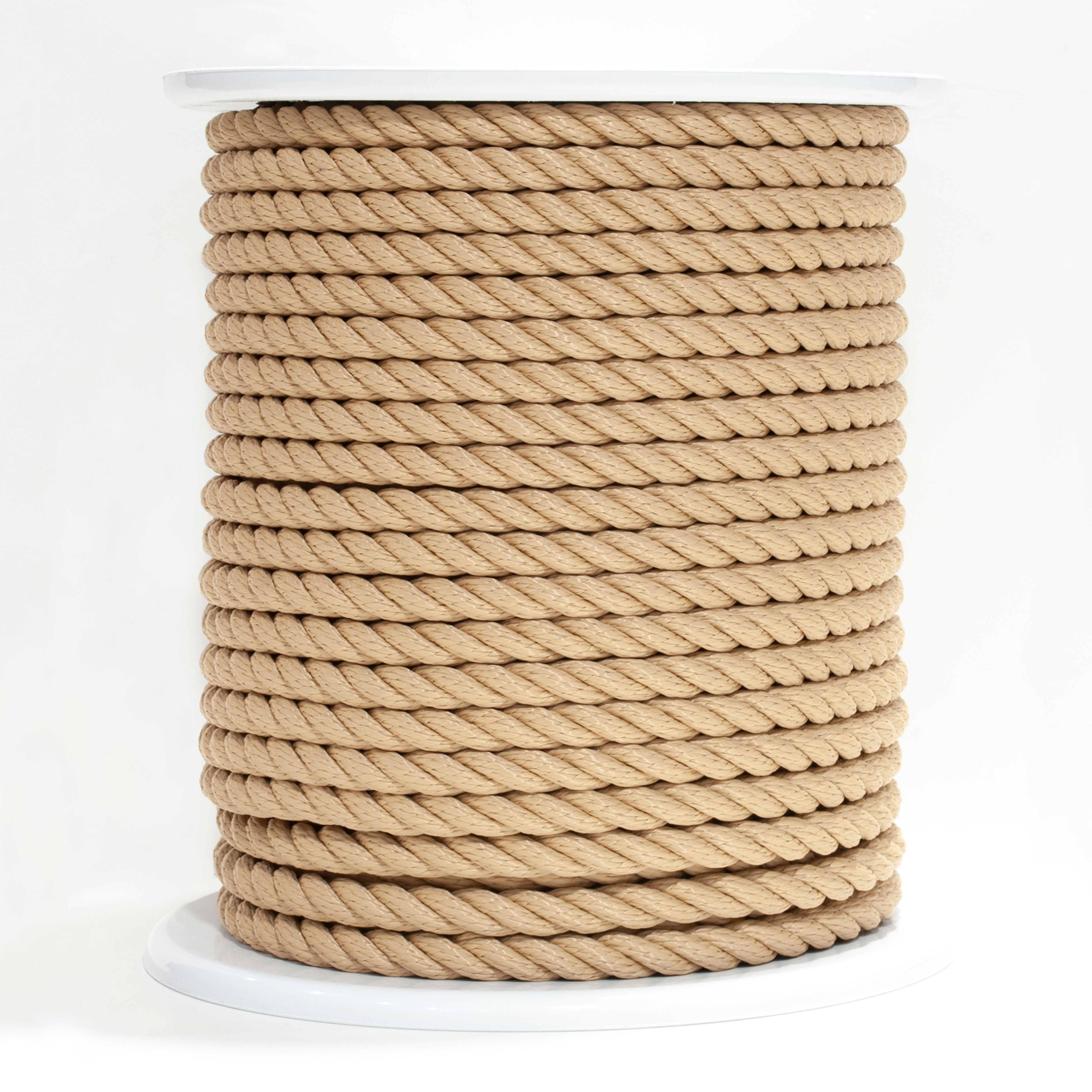 Cabo de poliéster de alta tenacidad en 3 cabos, grosor de 14mm y longitud de 1m en color camel, de la marca Rombull.