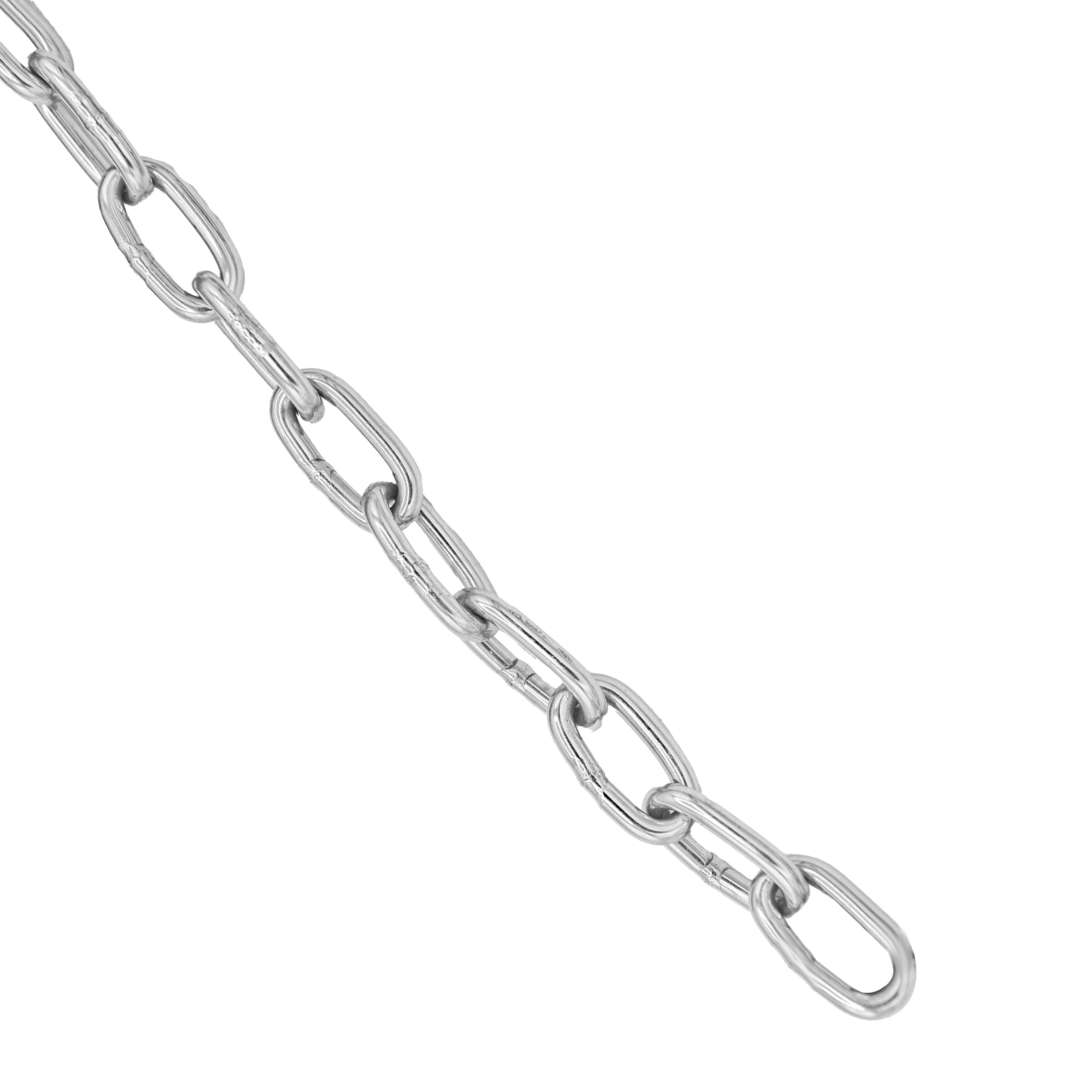 Metro de cadena de eslabones largos fabricada en acero inoxidable,acero DIN5685 AISI 316 de 3 mm de diámetro. Los eslabones de cadena soldados industrialmente brindan alta estabilidad y resistencia El acero inoxidable es resistente a los ácidos y al agua de mar, por lo que es ideal para aplicaciones marítimas. La cadena de eslabones largos DIN5685 se utiliza para cualquier tipo de sujeción en el sector náutico, en obras de construcción, en agricultura, en maquinaria agrícola y en el sector metalmecánico.