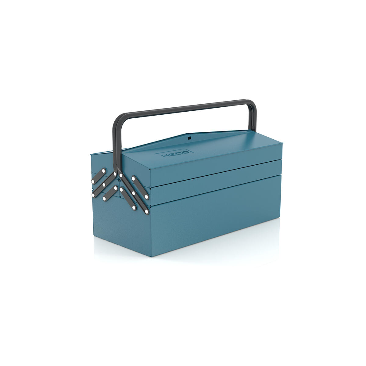 Ver productos de la misma categoríaCaja para herramientas. Apertura de tapas 360° . Opción cierre con candado. Soldado por resistencia, secado a estufa, previo desengrasado y fosfatado. Armazón de chapa pulida azul. Asa de tubo plegado 13mm de diámetro. Asa de transporte ergonómica, que sirve al mismo tiempo para la apertura instantánea de la caja. Unida a la caja por medio de dos remaches de aluminio de fabricación especial. Las tapas y la caja vienen unidas por una bisagra de piano que sale de las mismas piezas y unidas por una varilla de 2,4 mm, de diámetro.