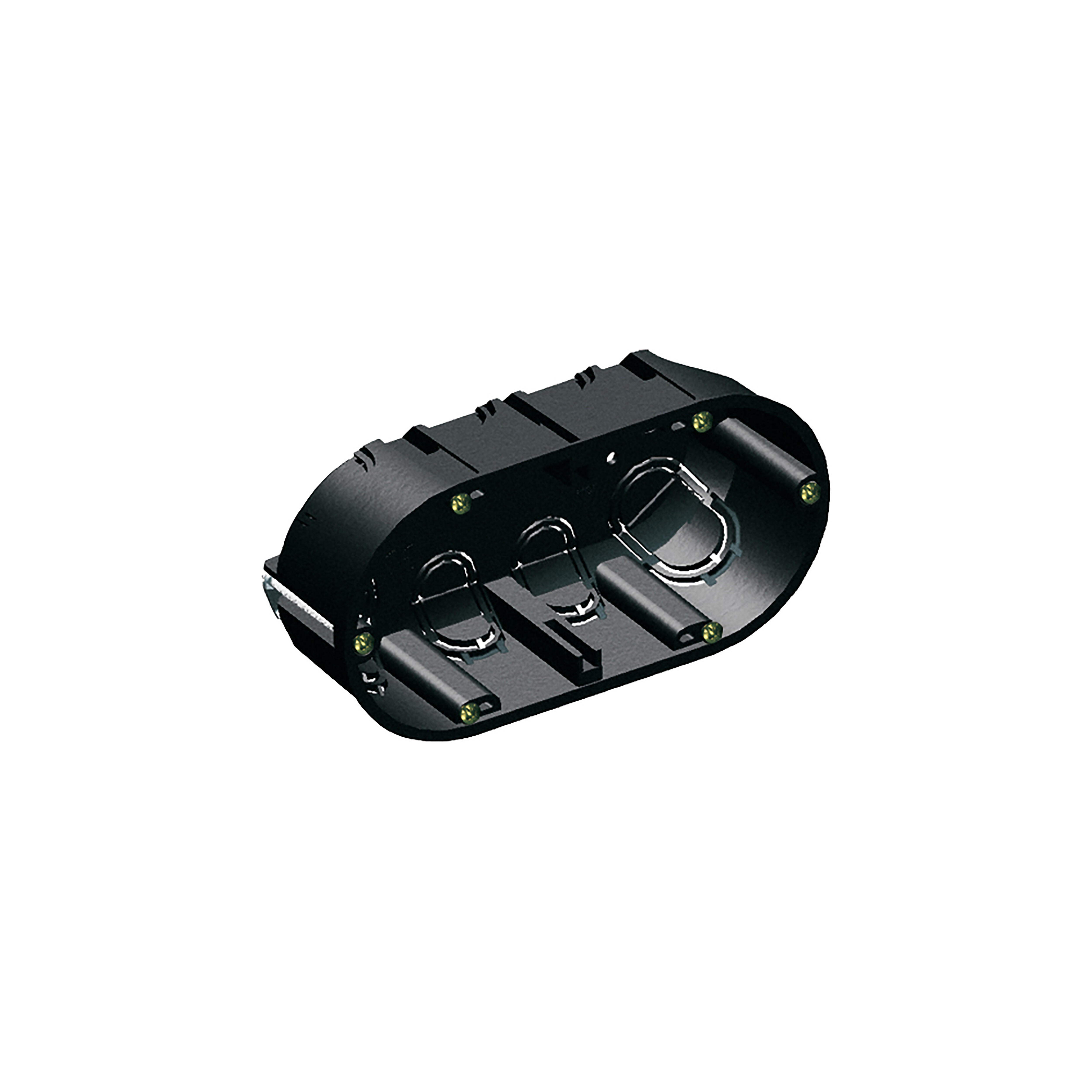 Caja de mecanismo eléctrico 136x68x42mm para empotrar de interior en tabiques huecos. Para 2 elementos. Fijación con garras metálicas. Dimensiones para empotrar 140x68x46 mm.