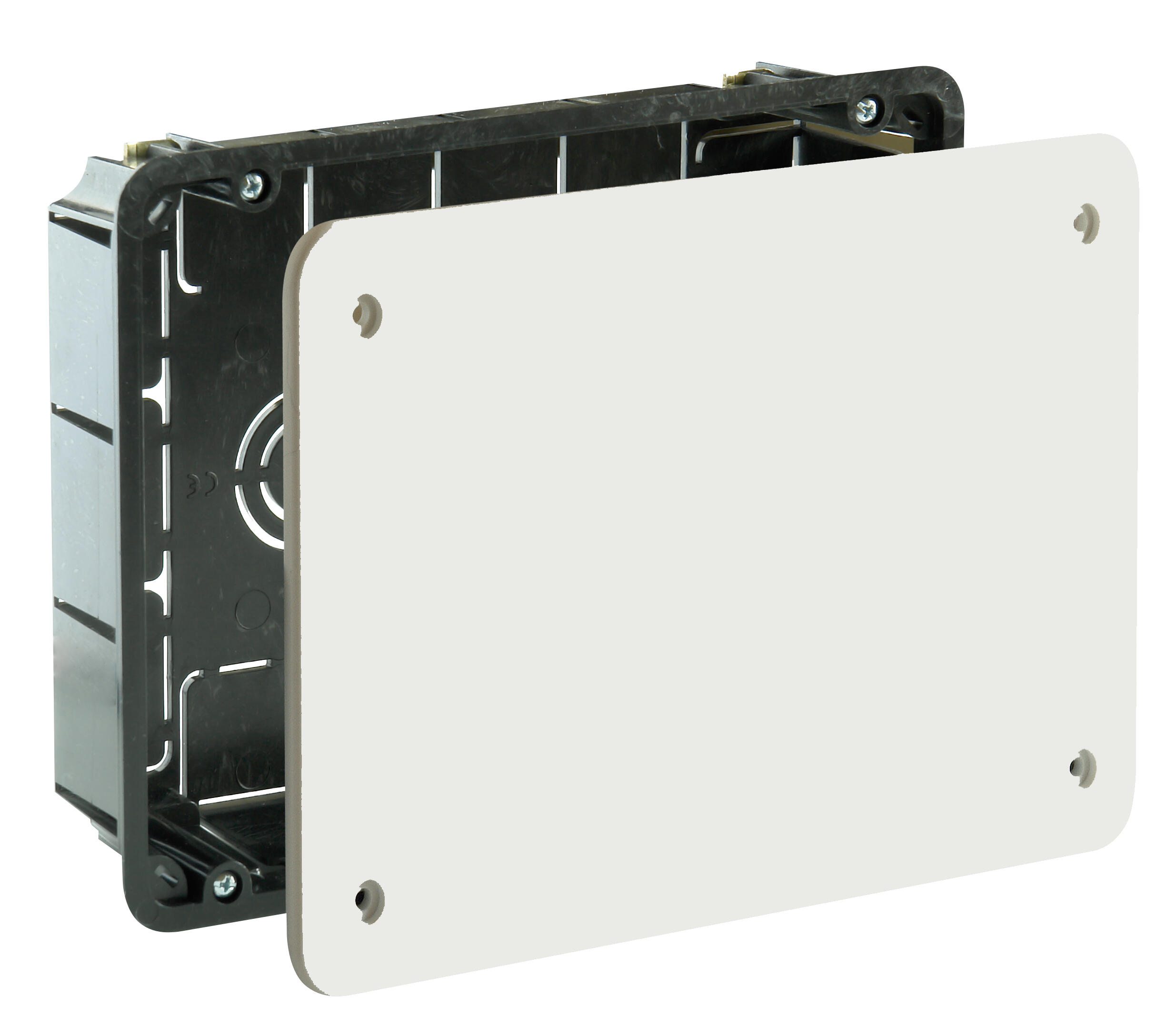Caja de registro eléctrico 300x200x60mm para empotrar de interior con tapa de tornillos. Caja de empalme y derivación de color blanco para instalacion empotrada, registro de terminación de red, 20 entradas para tubo de 40mm de diámetro, tapa con tornillos y un tabique separador.