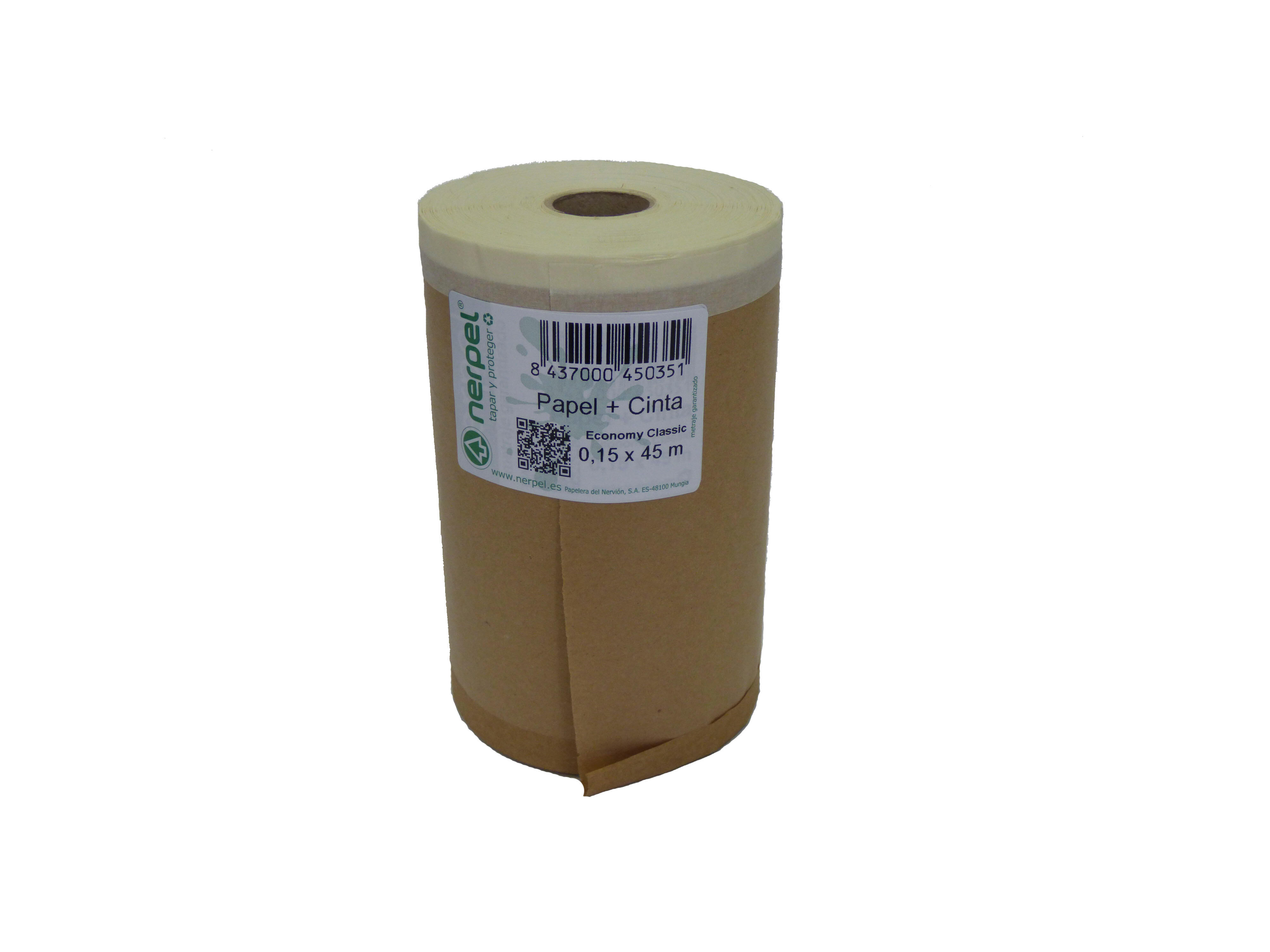 Caja de rollos papel kraft para proteger con cinta adhesiva de caucho natural para aplicaciones de enmascaramiento de superficies previo al pintado.