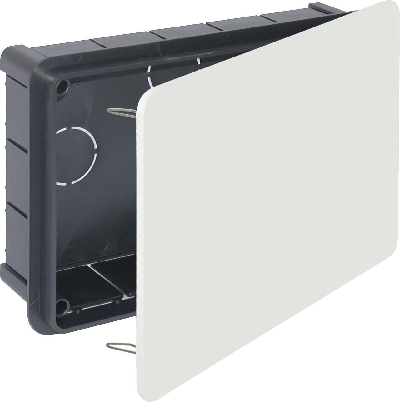 Caja de registro eléctrico 200x130x60mm para empotrar de interior con tapa de garras metálicas.