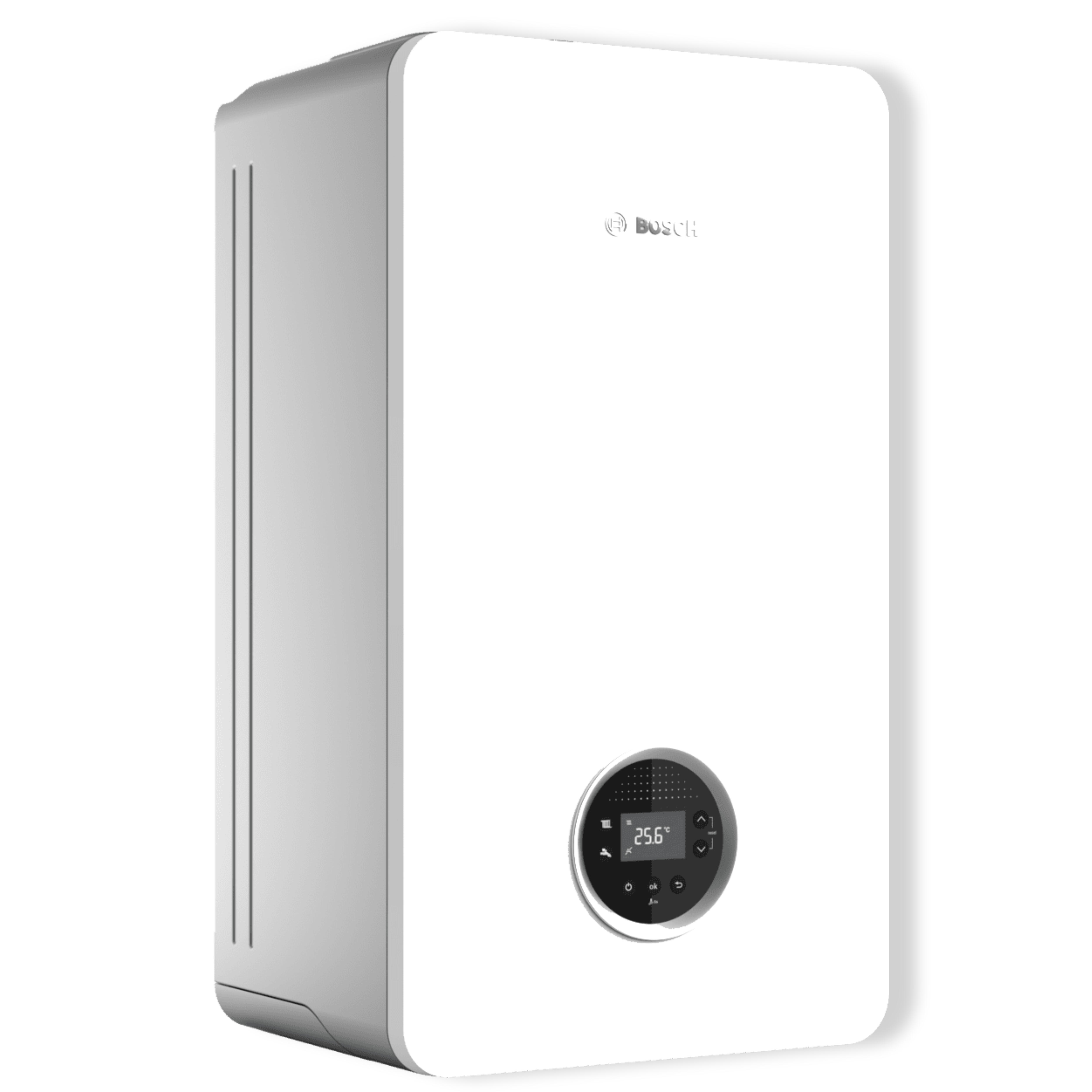 Caldera de gas Bosch C4300I W 30. Potencia de calefacción 25kW y ACS de 30kW. Superficie calefactable: 180m2 aproximadamente. Indicada para dos duchas simultáneas.