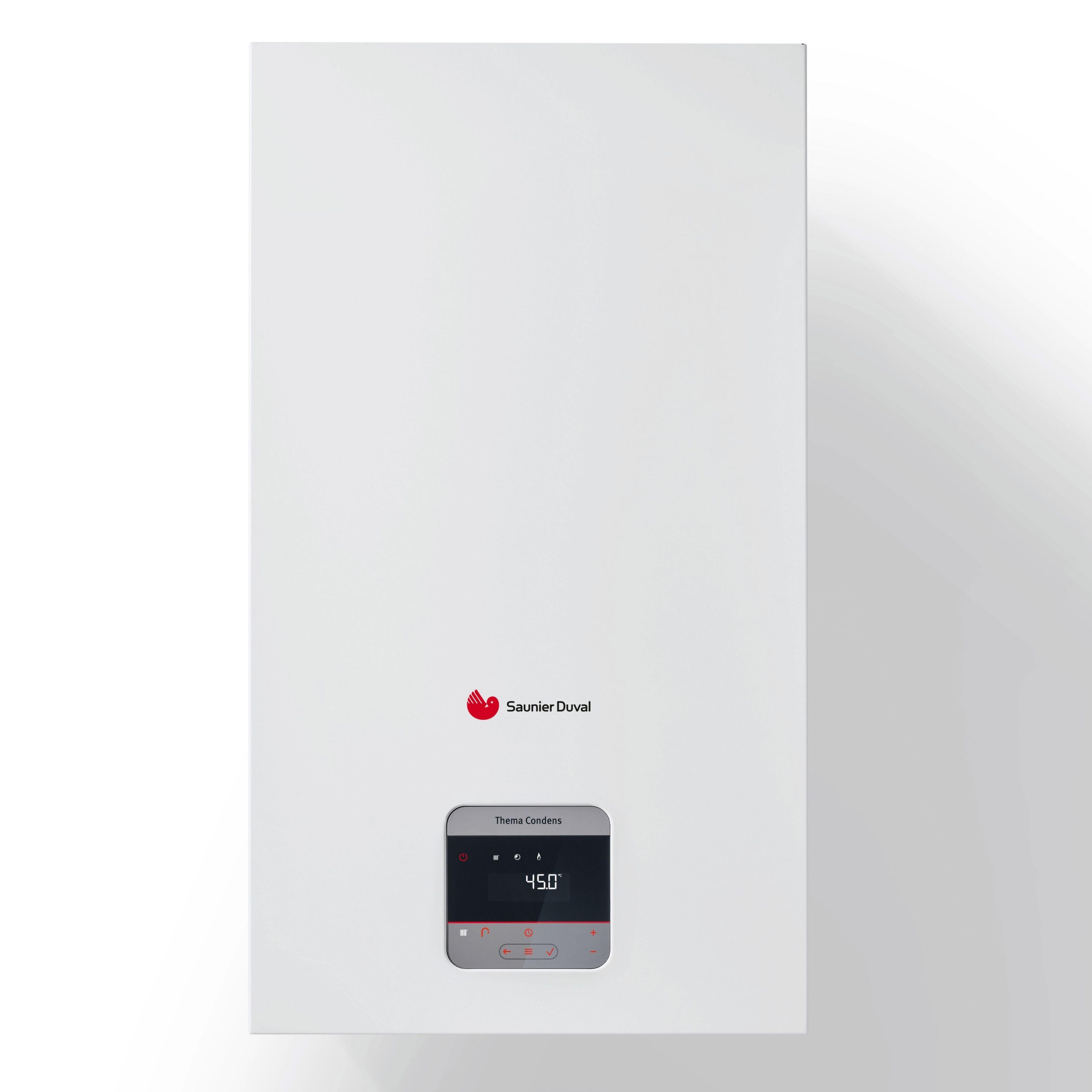 Caldera de gas Saunier Thema Condens 26 Cable. Potencia de calefacción 20kW y ACS de 26kW. Superficie calefactable: 120m2 aproximadamente. Indicada para una ducha.
