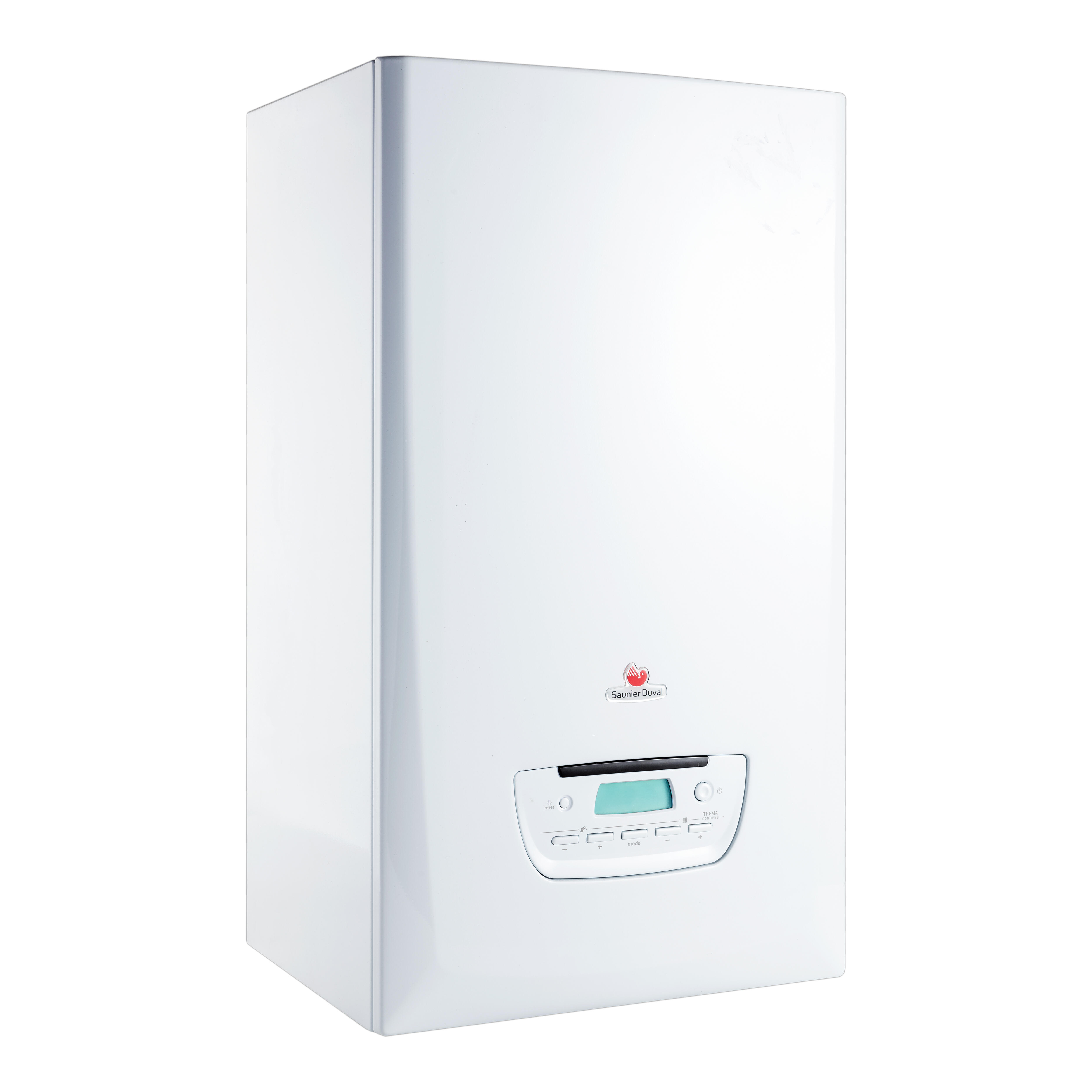 Caldera de gas Saunier Thema Condens F25. Potencia de calefacción 18,1kW y ACS de 25,5kW. Superficie calefactable: 120m2 aproximadamente. Indicada para una ducha.