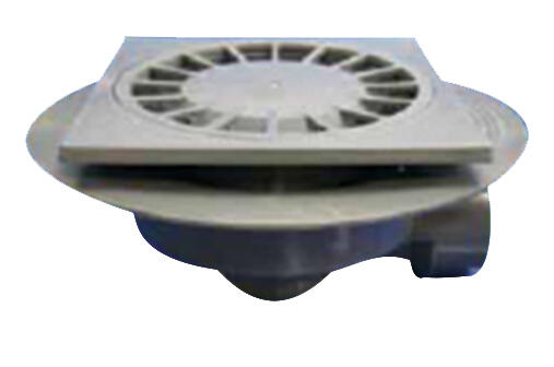 Caldereta sifónica para platos de ducha de obra con rejilla de acero inoxidable y con tela de PVC. Salida horizontal o vertical de 25x25cm.