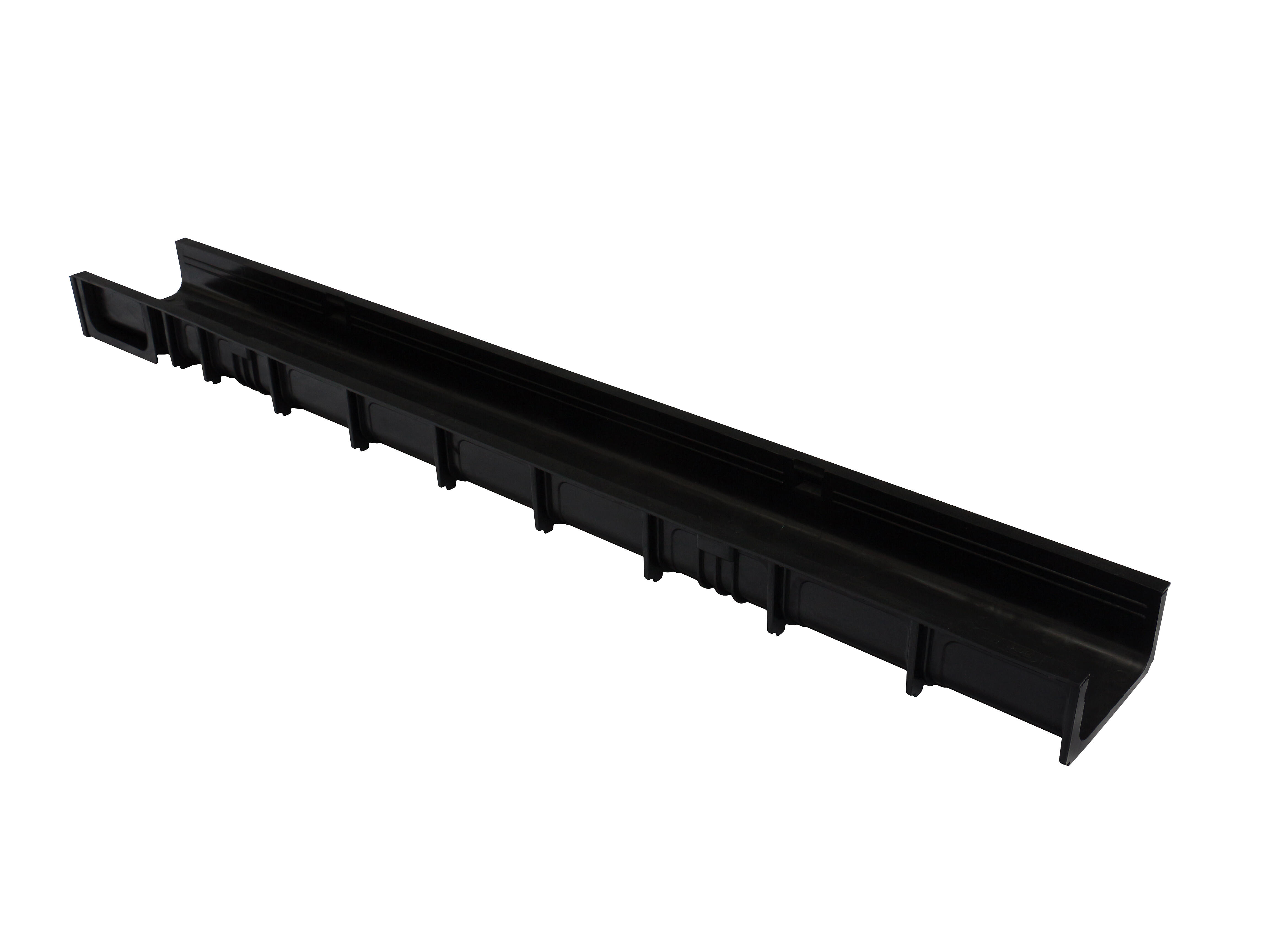 Canal de drenaje sin anclaje, fabricado en polipropileno negro.