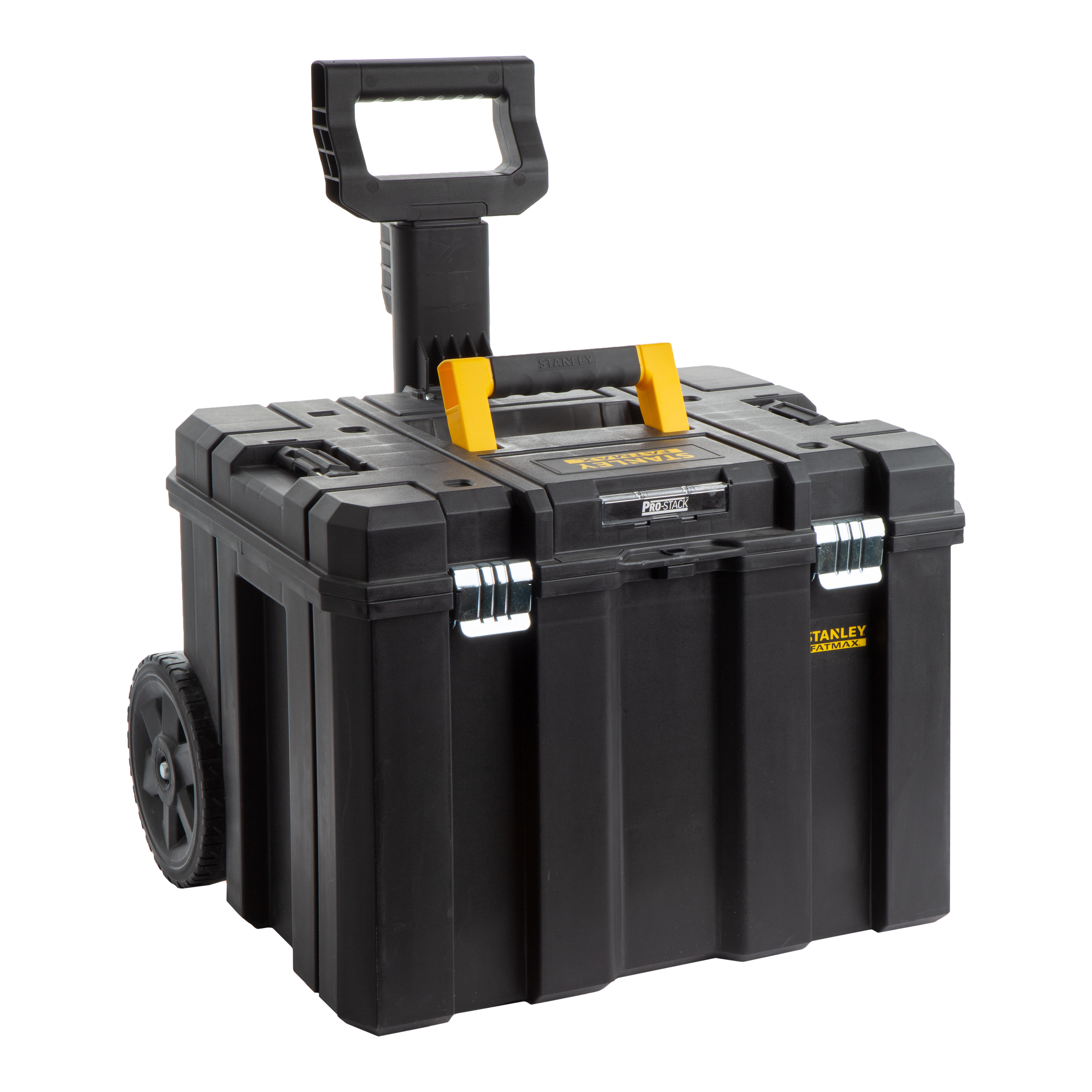 Gran caja de almacenamiento con capacidad para 30 kg. Ruedas resistentes de 17 cm. Asa telescópica que resiste hasta 50 kg. Pulsador para apertura y cierre del asa. Enganche de apilado para añadir módulos. Placa de identificación. Enganches metálicos anticorrosión