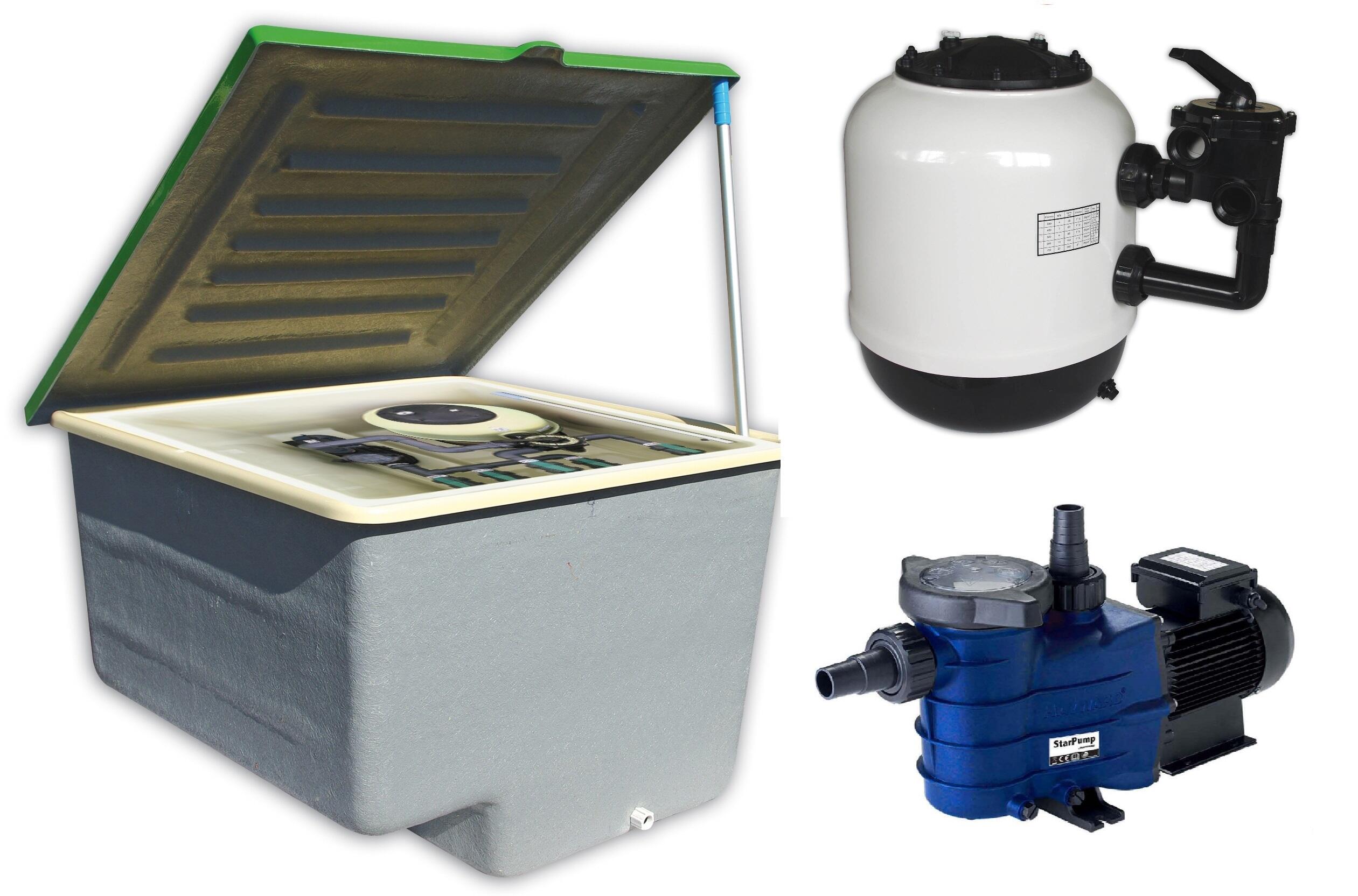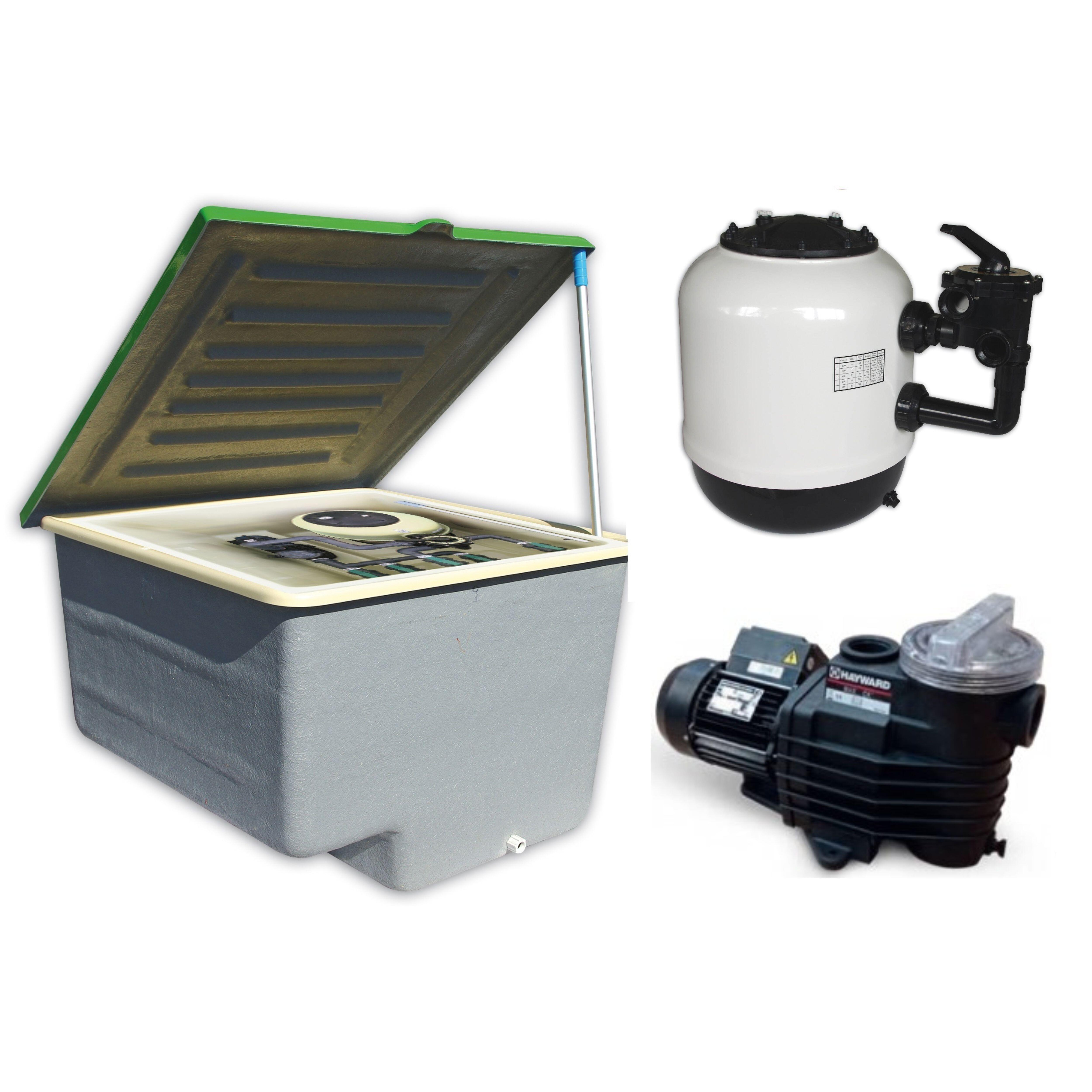 Caseta de piscina montada con filtro inyectado de 500 mm y bomba de 0.75 cv.