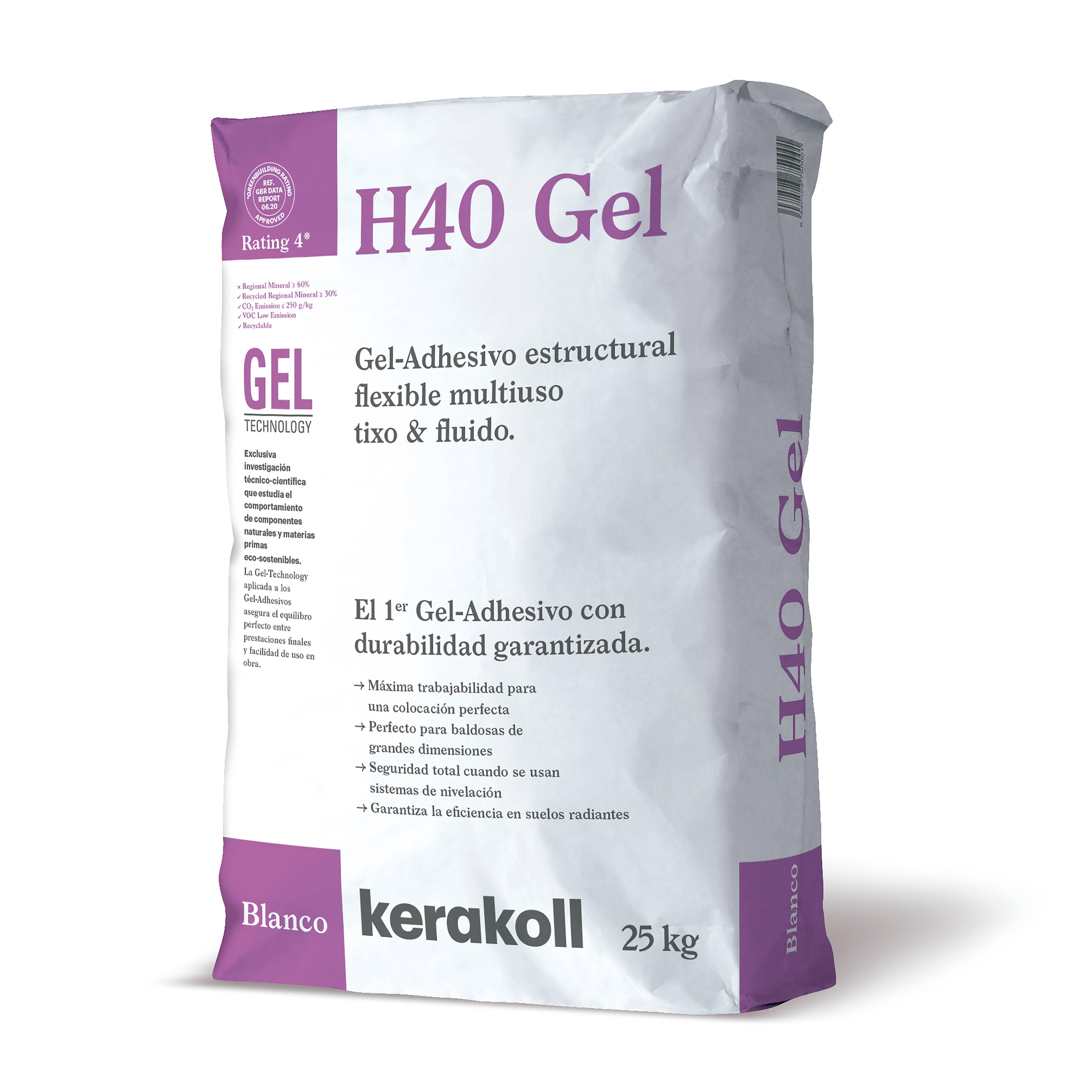 Cemento cola Kerakoll H40 es un gel-adhesivo, apto para la colocación de porcelánico y grandes formatos tanto en interior como en el exterior. Saco 25 kg. Color blanco.