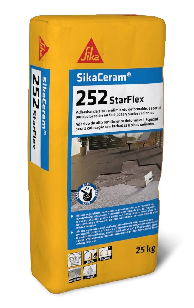 Ver productos de la misma categoríaCemento cola Sika Ceram 252 es un adhesivo cementoso para la colocación de piezas cerámicas de tamaño medio a gran formato. Sacos de 25 kg. Color blanco.