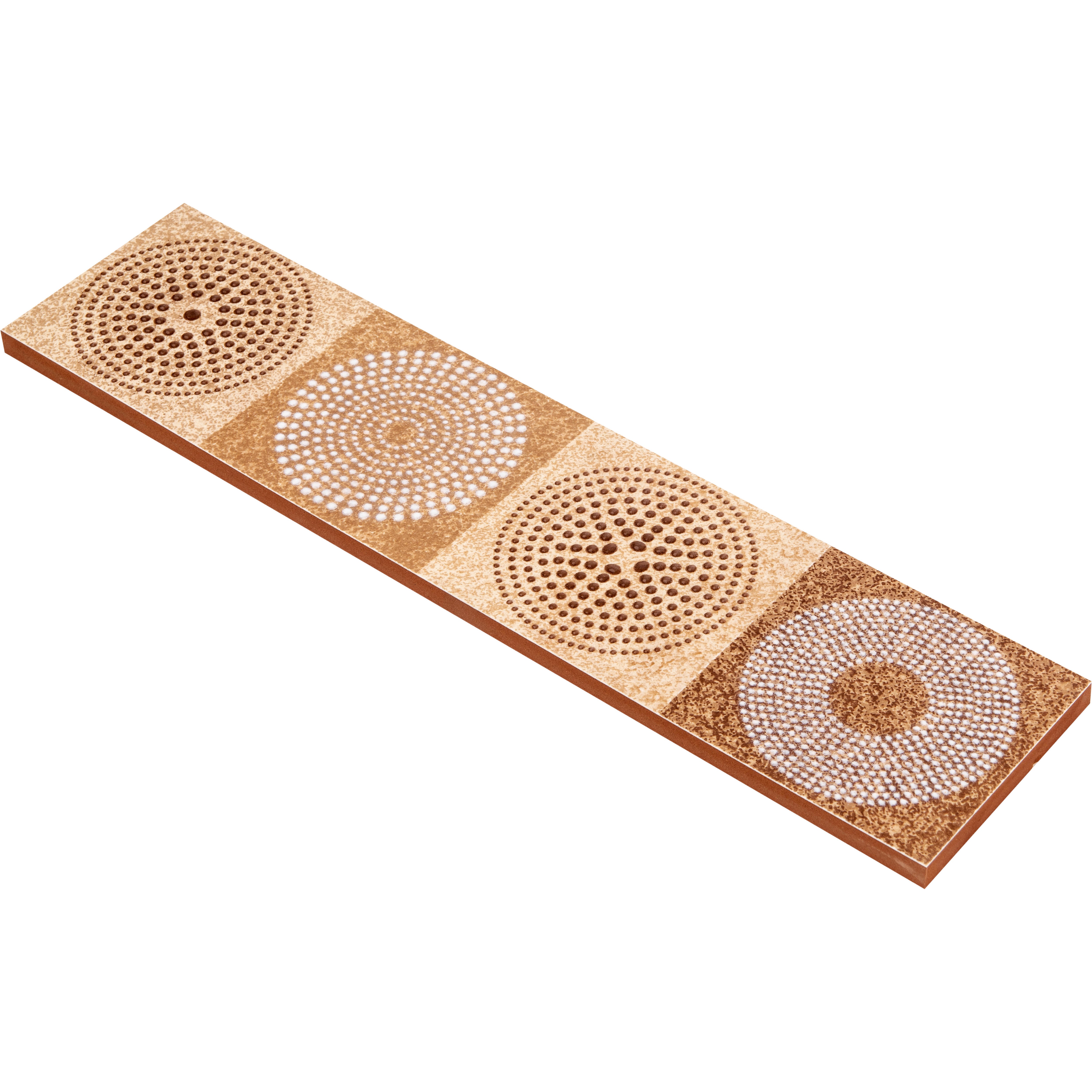 Cenefa cerámica para paredes de interior en cocinas y baños. La cenefa mide 7x30 cm. Se presenta para su venta en packs de 3 piezas. Color beige. Gracias a su enorme variedad de diseños, realzan cualquier ambiente de Baños y Cocina.
