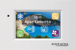 El centralizador elegance cable permite llevar un control remoto de la climatización y la temperatura de las distintas zonas del espacio. Tiene horario de programación según el modo ( frío/calor/suelo radiante/ciclos combinados) y selector de velocidad ventilador manual o automática. Montaje en superficie o empotrado y no es necesaria fuente de alimentación externa. la utilización es muy fácil e intuitiva. Dimensiones: 119 x 79 x 16 mm control remoto de todas las estancias interfaz en 6 idiomas intervalos de 0.5 ºc pantalla full color 65.536 colores resolución 400 x 240 pxl