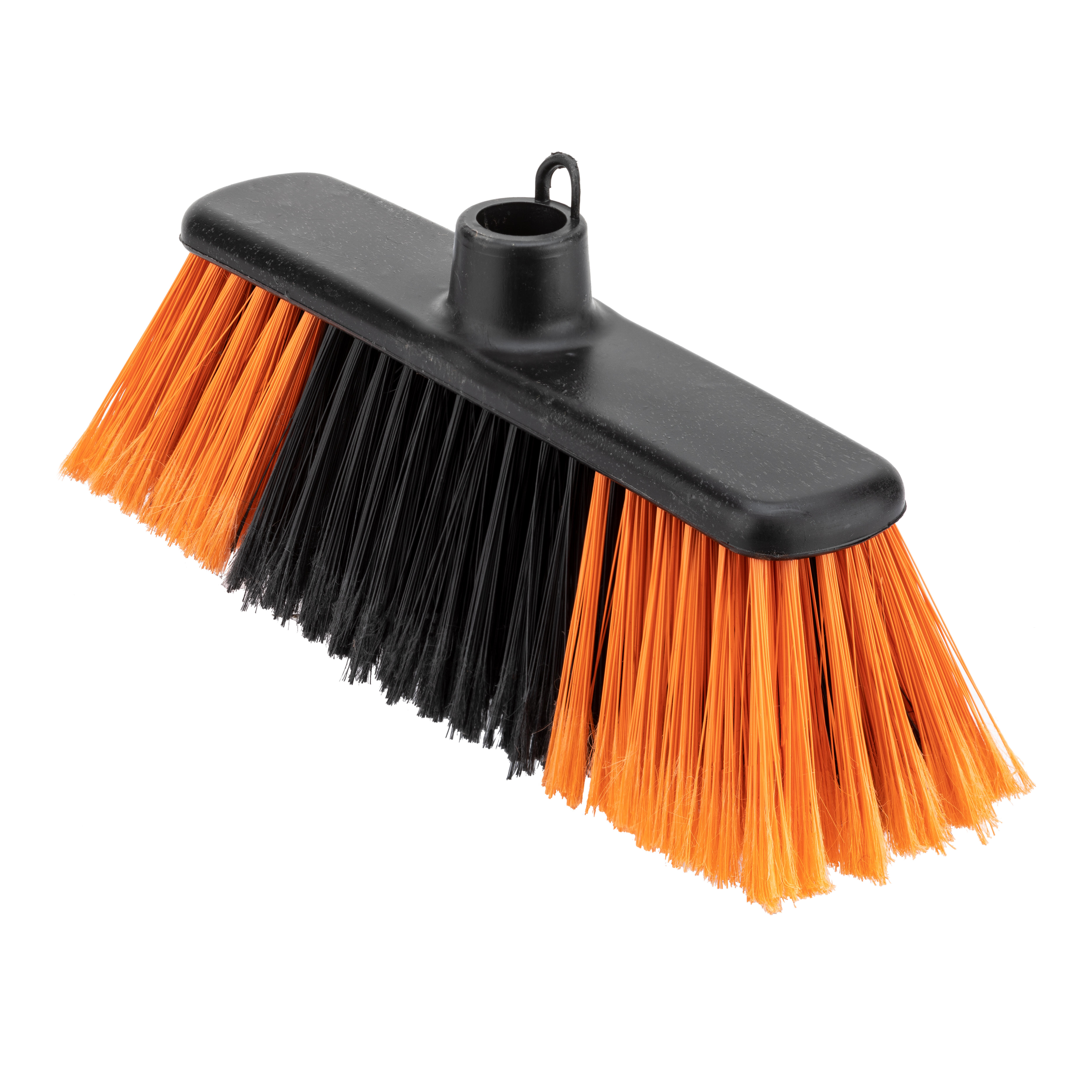 Escoba recta corta con soporte de polipropileno y fibra PVC. Sin mango.