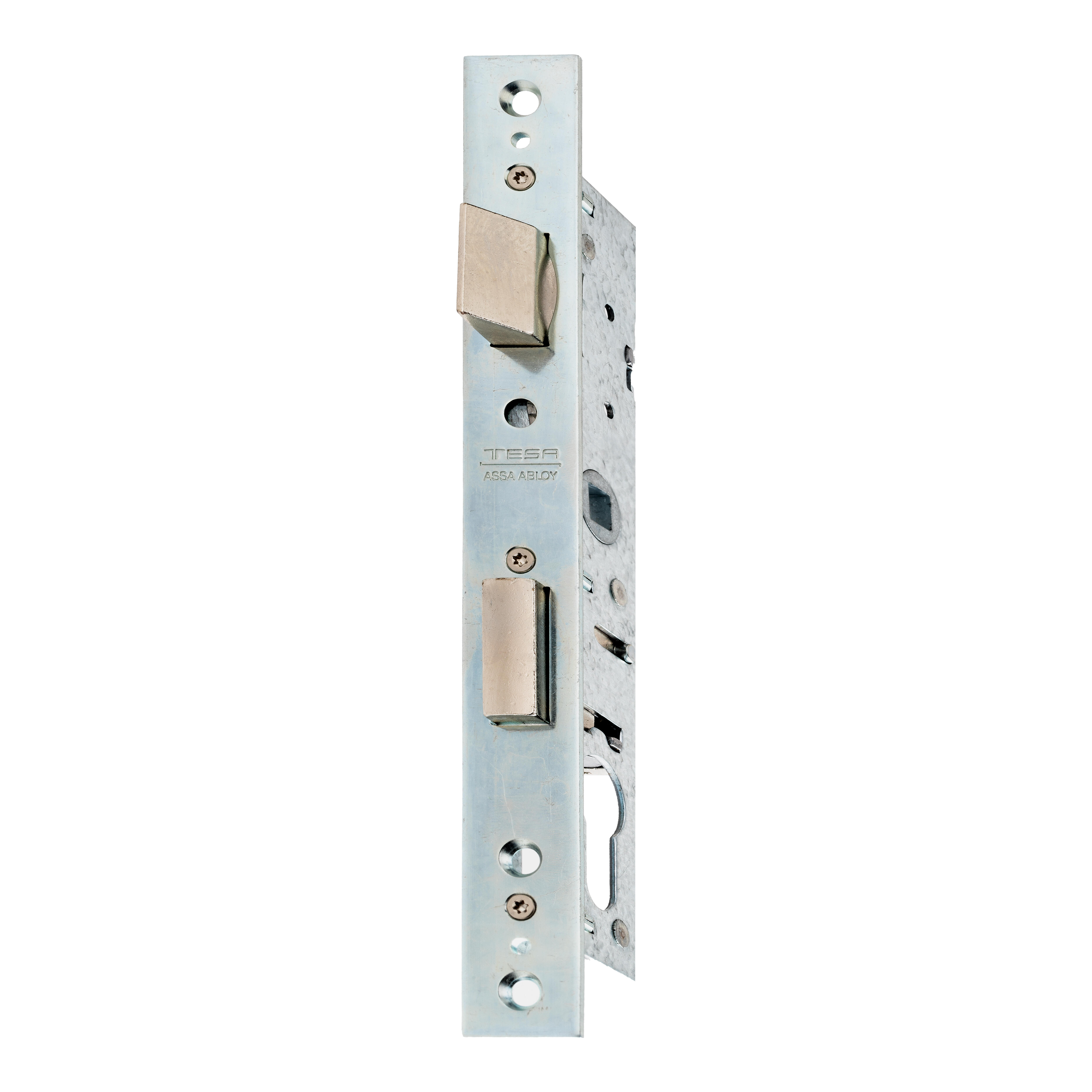 Cerradura de embutir para puerta de metal interior en 25mm acero inoxidable con 3 llaves 421038SSI TESA.