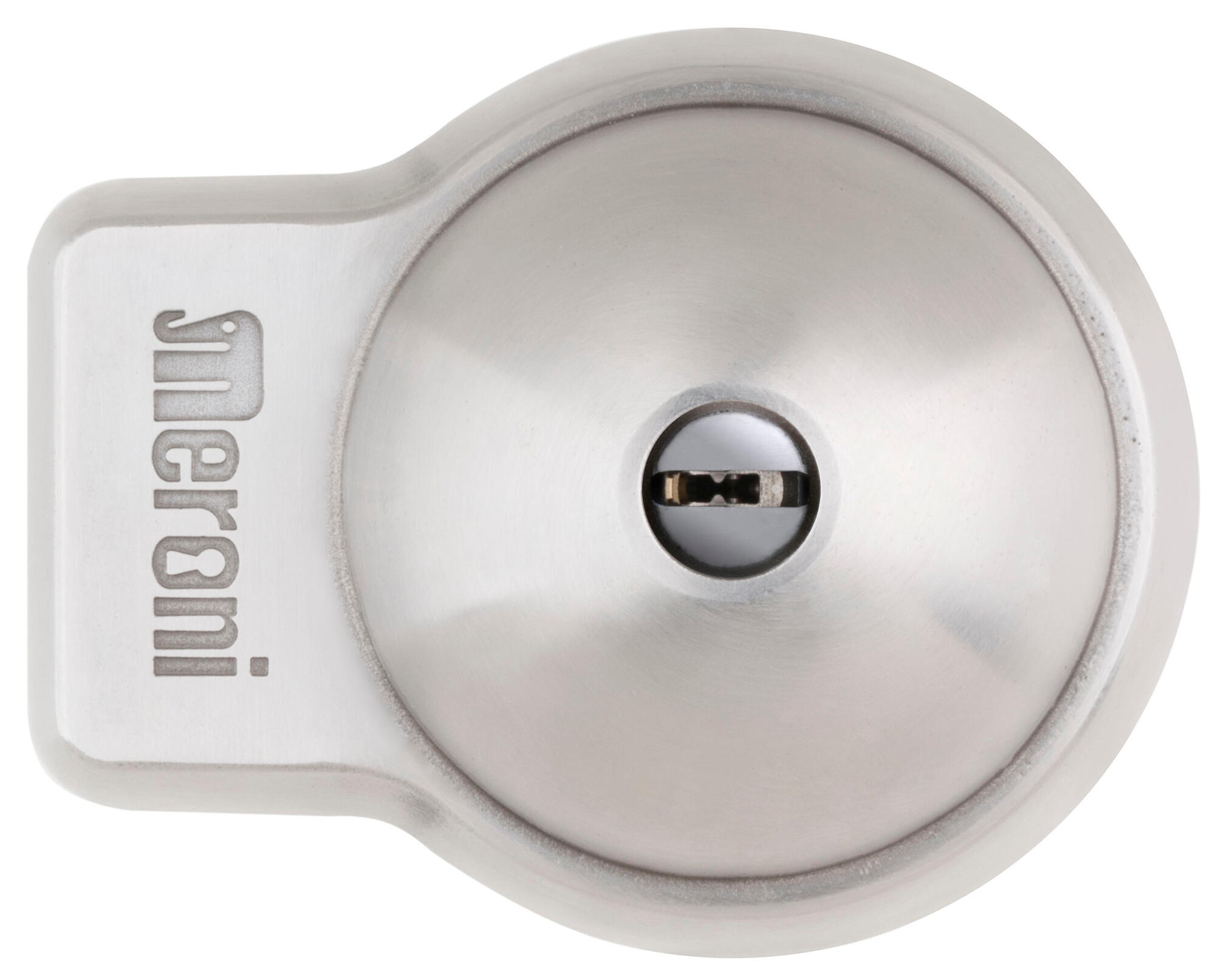 Cerradura / Cerrojo o cierre resistente de acero galvanizado. Llave antisabotaje. Bloquea automáticamente cuando se cierra la puerta o trampilla y se abre con la llave especial. Tirador de emergencia interior. Diseño elegante