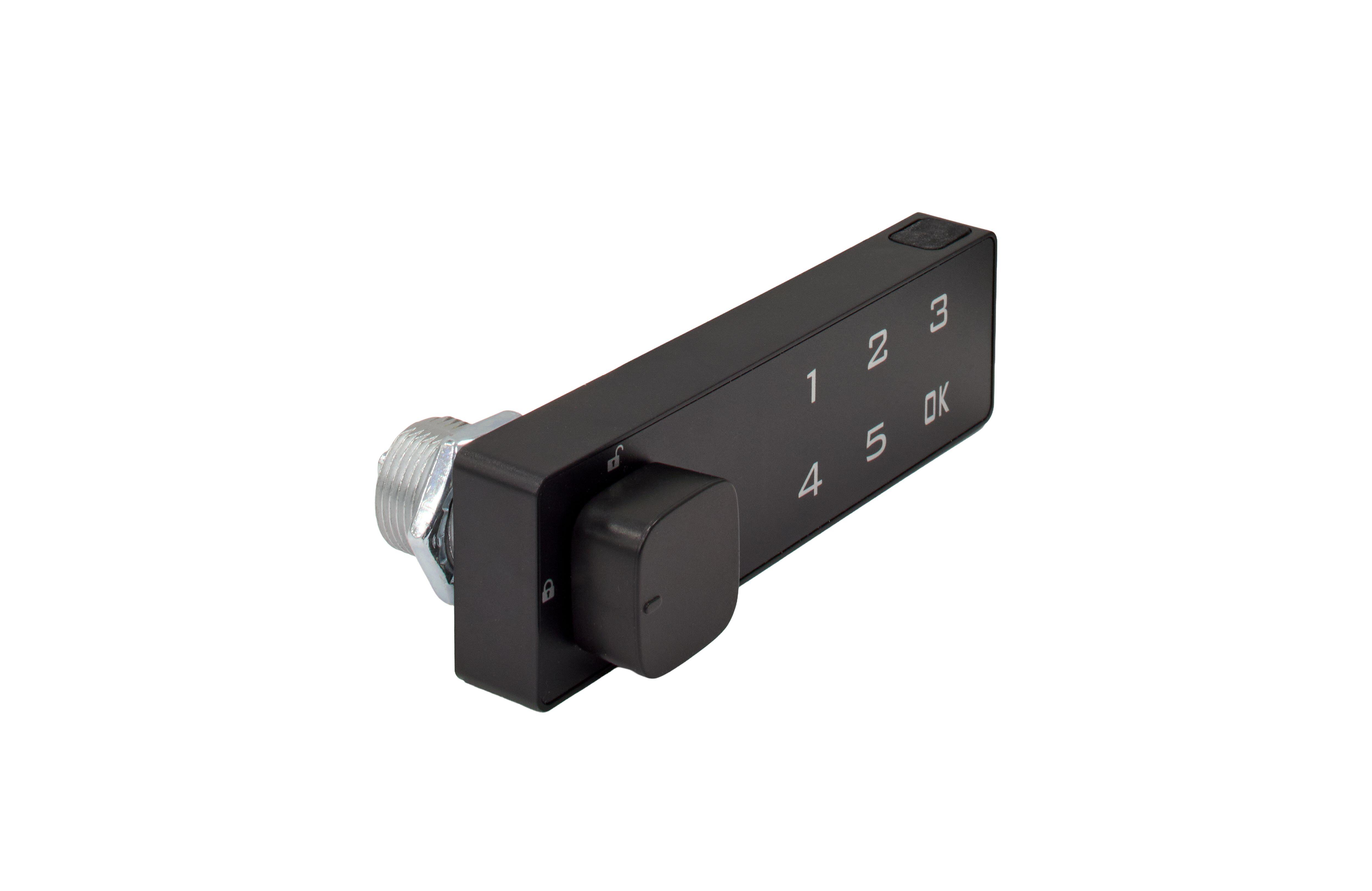 Cerradura electronica para taquilla, armarios, NERO. Posiblidad de dos niveles de gestión: master, usuario. Modos de uso: público (para uso compartido) / privado (para un único usuario). Posibilidad de códigos de apertura de 4 a 15 dígitos, con millones de combinaciones posibles. Medidas: 105 x 30 mm. Indicador de batería baja. Alimentación: pilas CR2450. Llave USB amaestrada para grupos: inicializa los códigos de apertura en caso de emergencia. Acceso lateral a la batería para un fácil reemplazo.