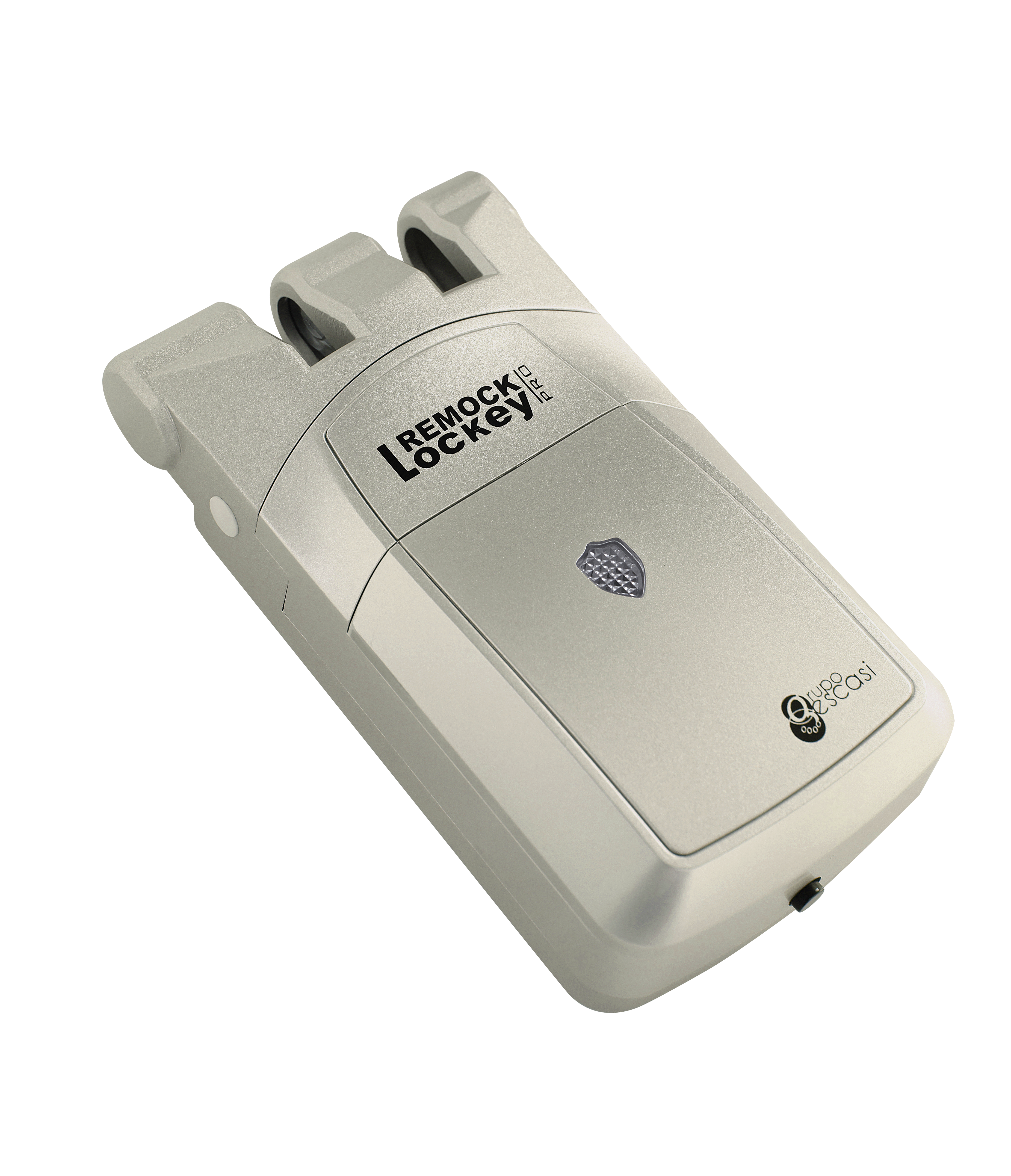 Cerradura invisible con 4 mandos por radiofrecuencia. De uso exclusivo para interior. Lleva incorporado un sistema redundante de apertura de emergencia compuesto de un segundo motor que desbloquea el principal en caso de incidencias tales como interferencias, rozamiento entre el cerradero y el perno por dilataciones o contracciones de los materiales de la puerta donde está colocada.
