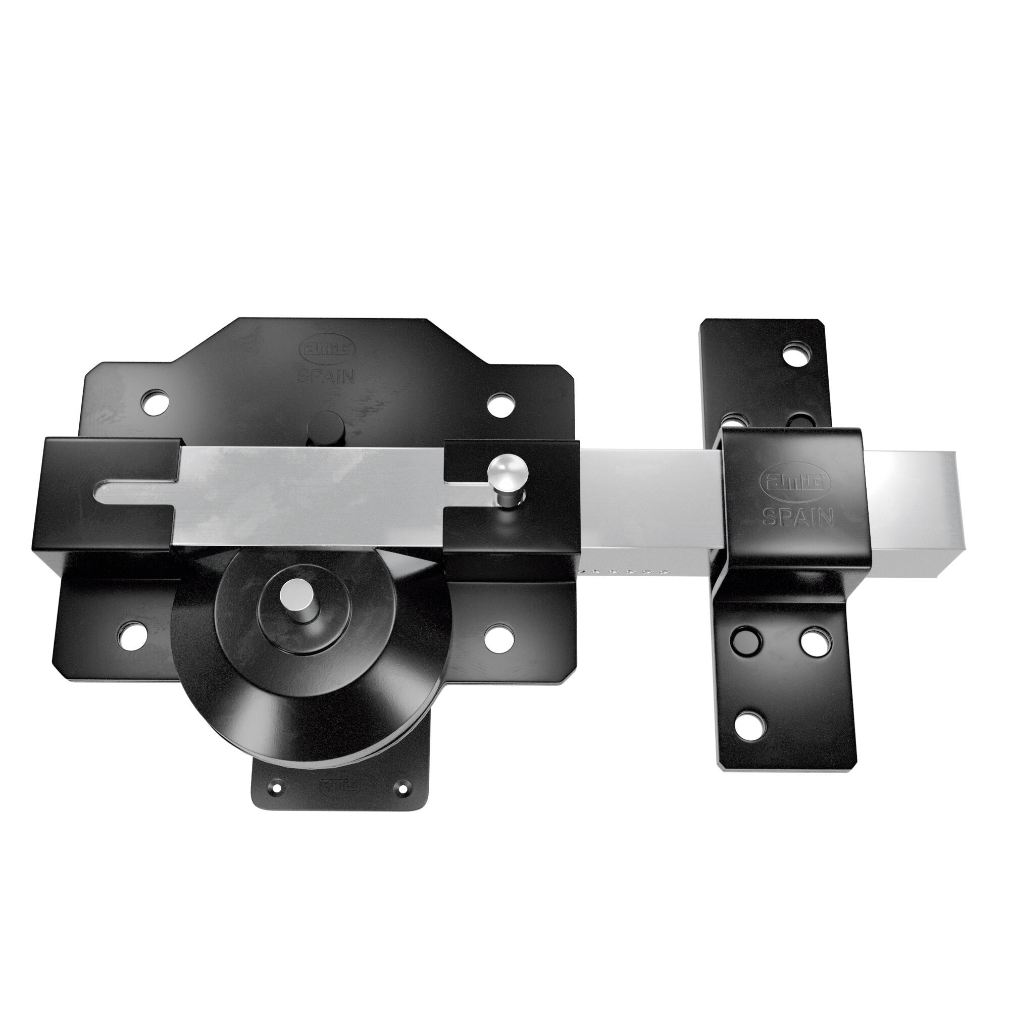 Cerrojo de sobreponer con cilindro redondo de alta seguridad y pestillo de apertura. Longitud del cilindro: 50 mm. Cilindro de 6 pines muelles de acero inoxidable. Protegido contra ganzúa. Placa con protección antitaladro. Alta resistencia a la extracción y a la rotura. Acabado negro. Sistema antibumping. Incluye tarjeta de propiedad y 5 llaves de punto codificada.
