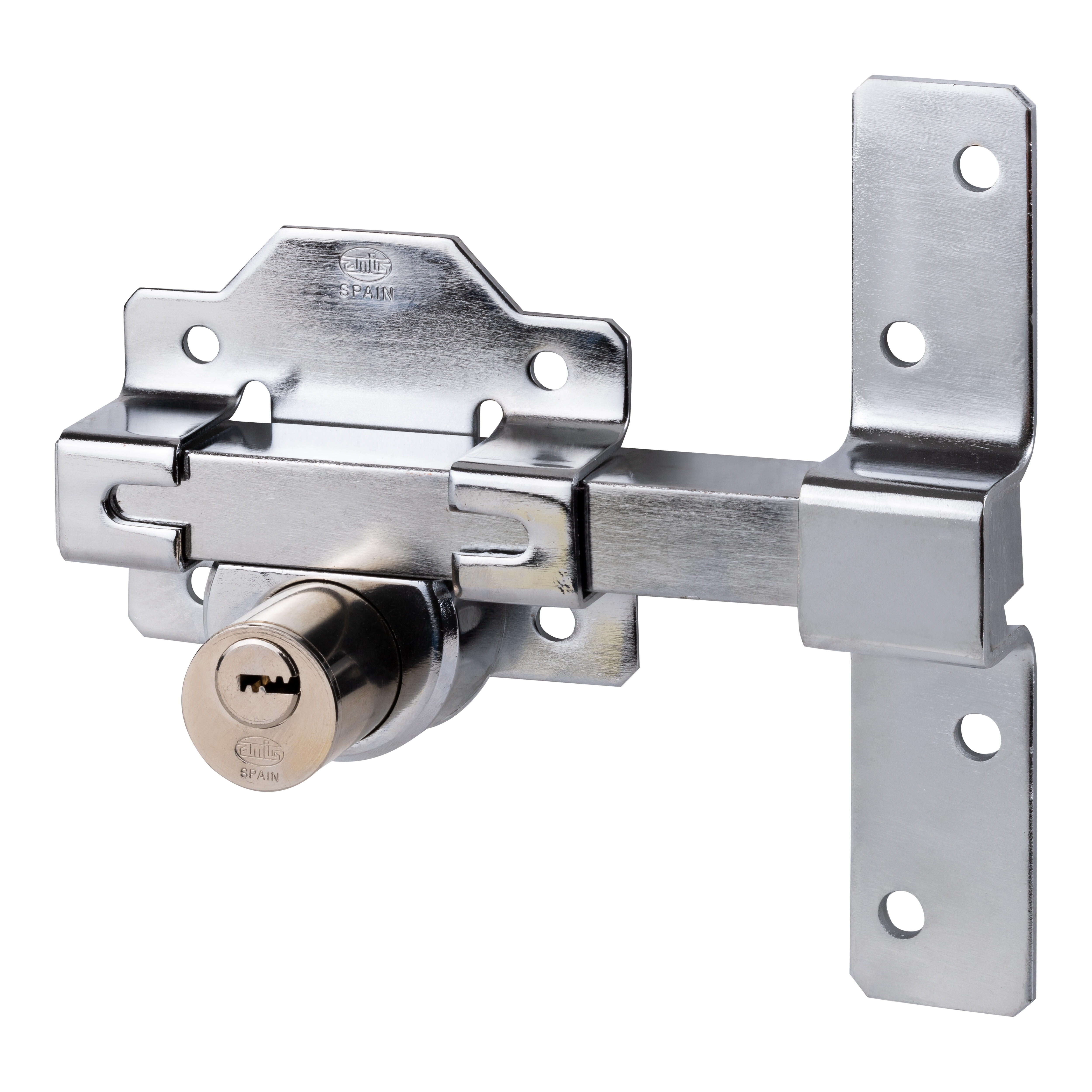 Cerrojo con cilindro puerta de seguridad interior cromado 5 llaves AMIG. Material de fabricación: acero.