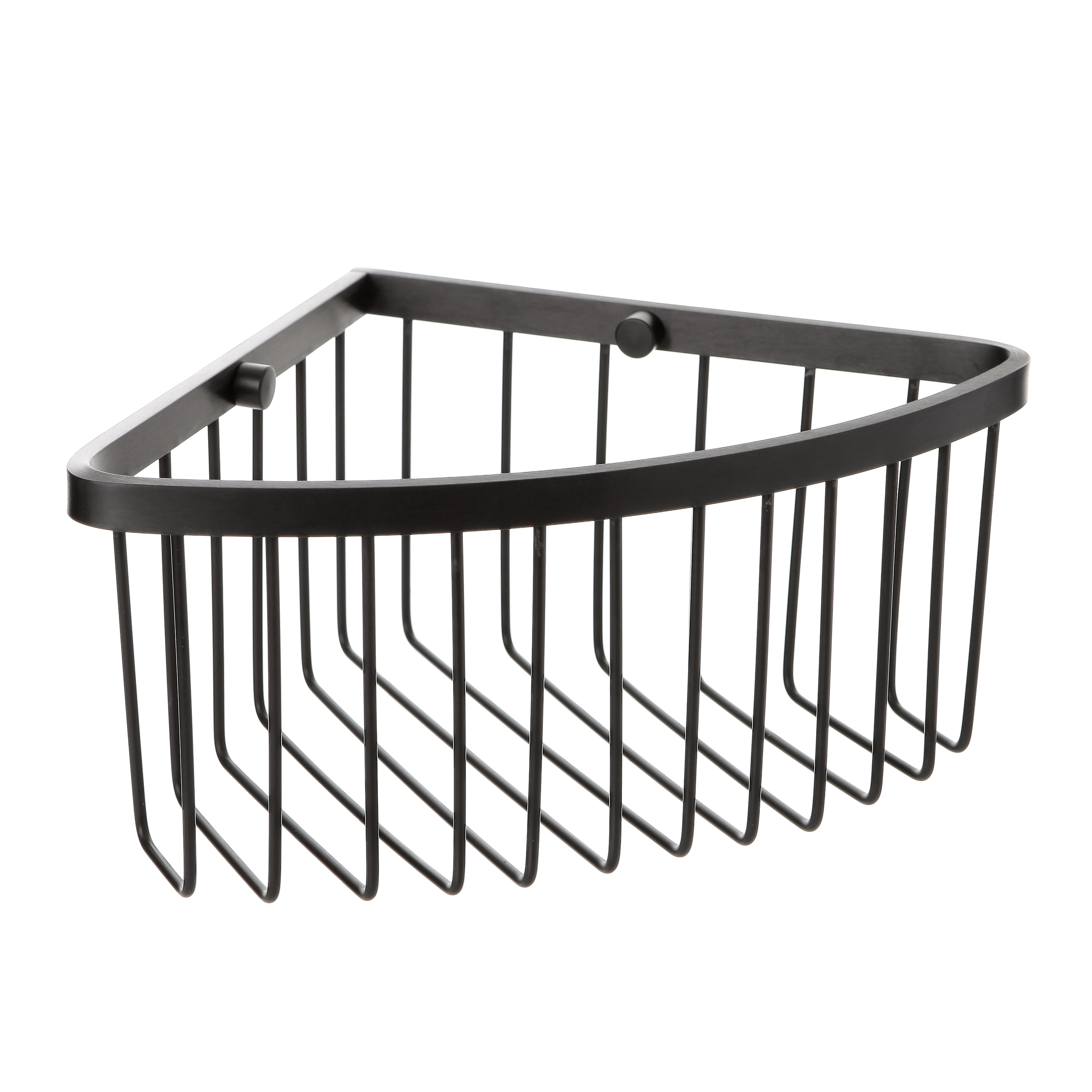 Cestillo rincón para ducha en color negro, medidas 20x11,5x20cm. En aluminio mate.