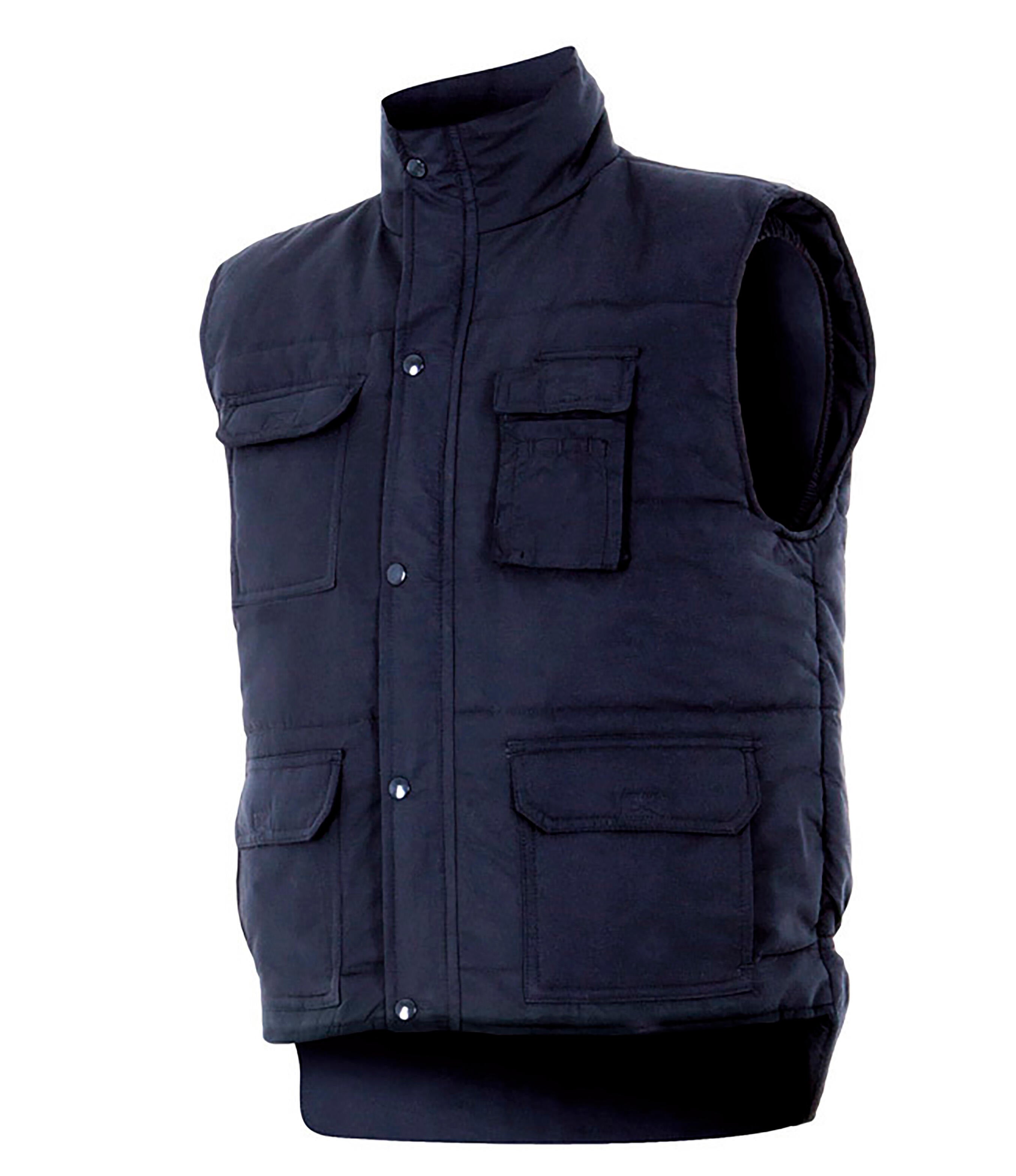 Chaleco 100% Poliester, 120 gr/m2. Poliester. Acolchado, con cremallera central oculta y cortavientos. 4 bolsillos exteriores. Azul. Talla L.