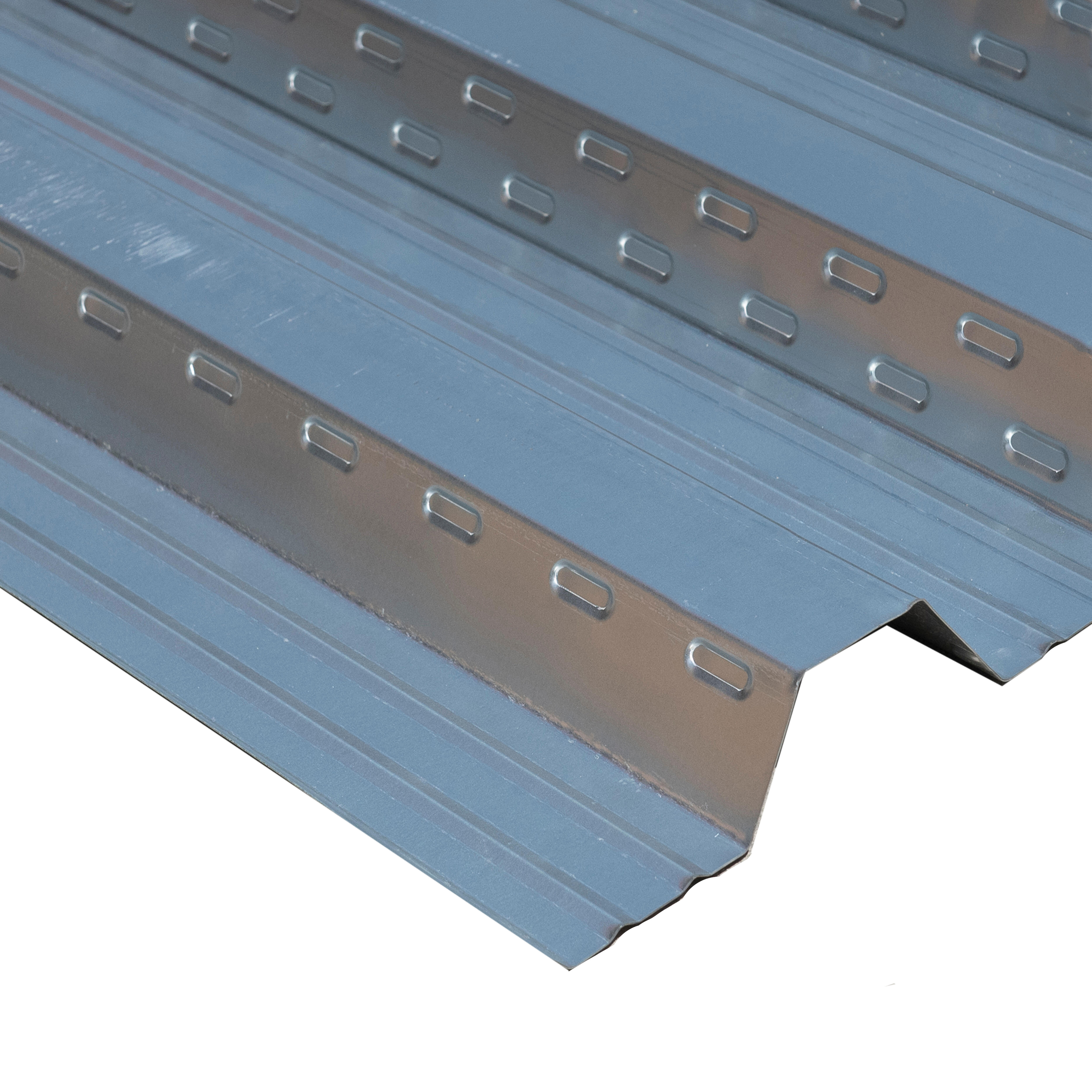 Chapa de perfil grecado de acero galvanizado con 8 mm de espesor. Indicada para la utilización de encofrado perdido y cumpliendo las funciones de resistencia como armadura de positivos.