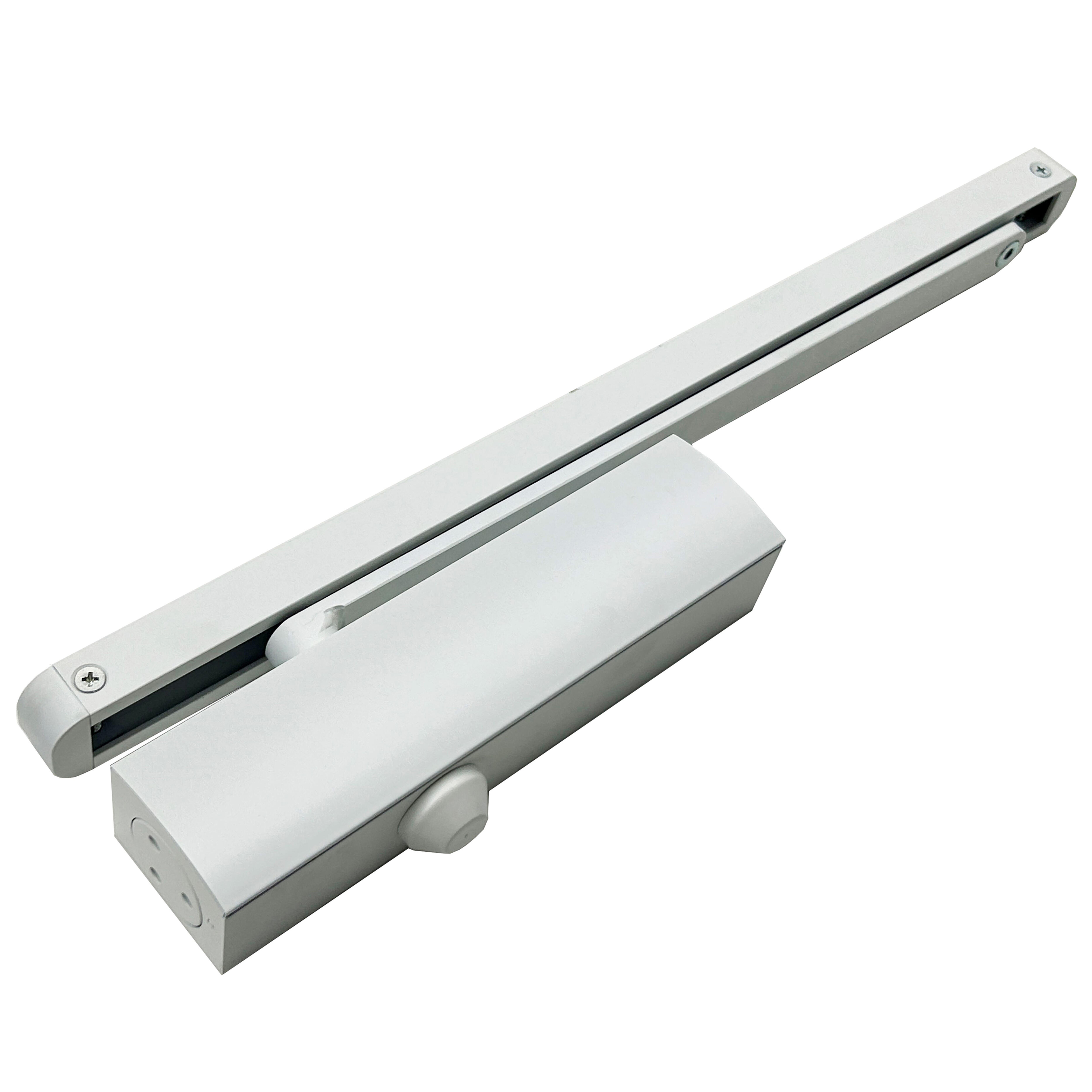 | Cierrapuertas de guía adecuado para puertas de 950 mm de ancho y 60 kg de carga máxima. Fuerza 3. Cuerpo de aluminio. Mecanismo de piñon-cremallera. Guía deslizante Ángulo de apertura 180º. Ajuste en velocidad de cierre y golpe final. Ha superado las pruebas de conformidad según BS EN1154:1996 / A1:2002 / AC:2006. Acabado blanco |