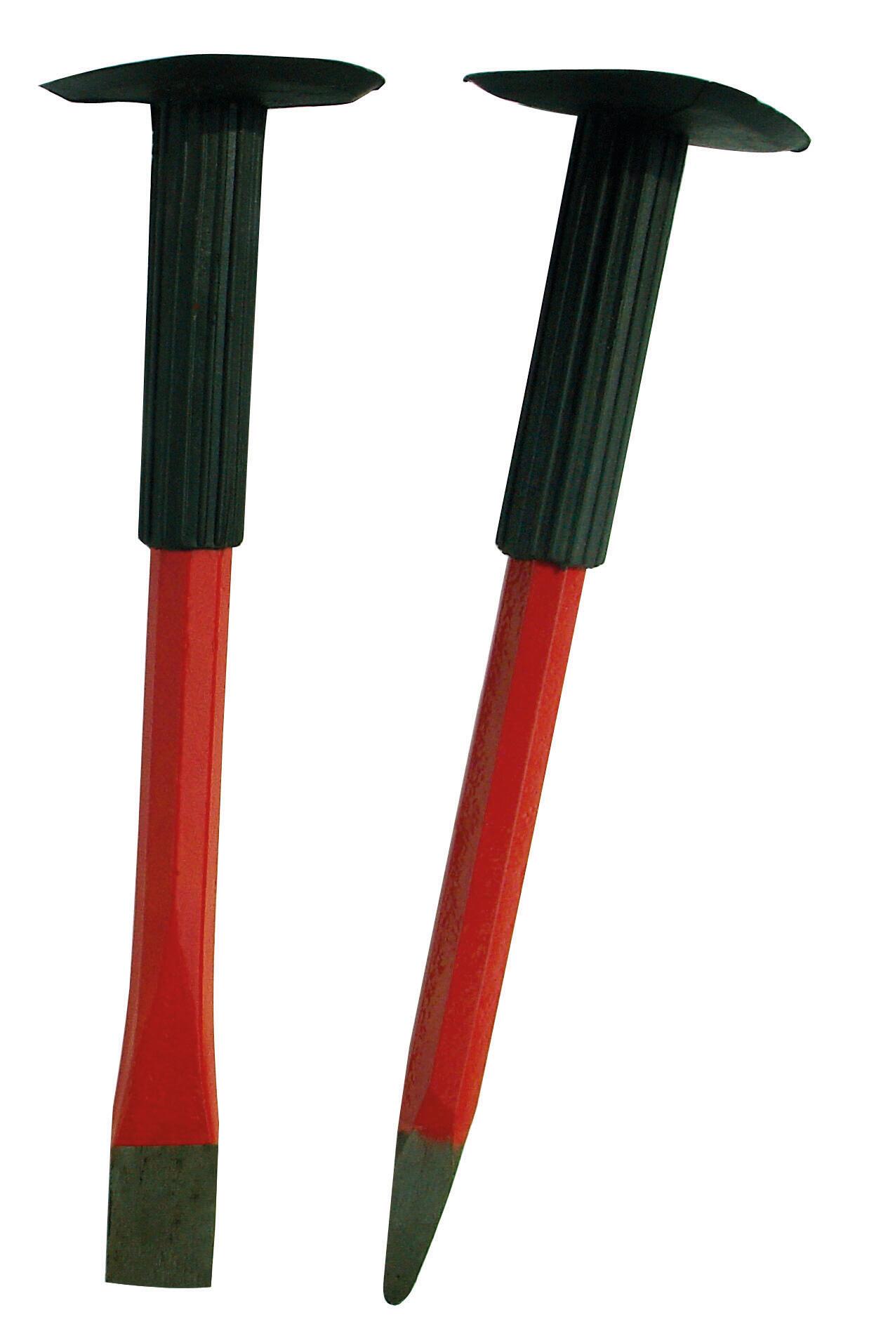 Juego de cincel plano y puntero. Medidas 300mm. Material acero.