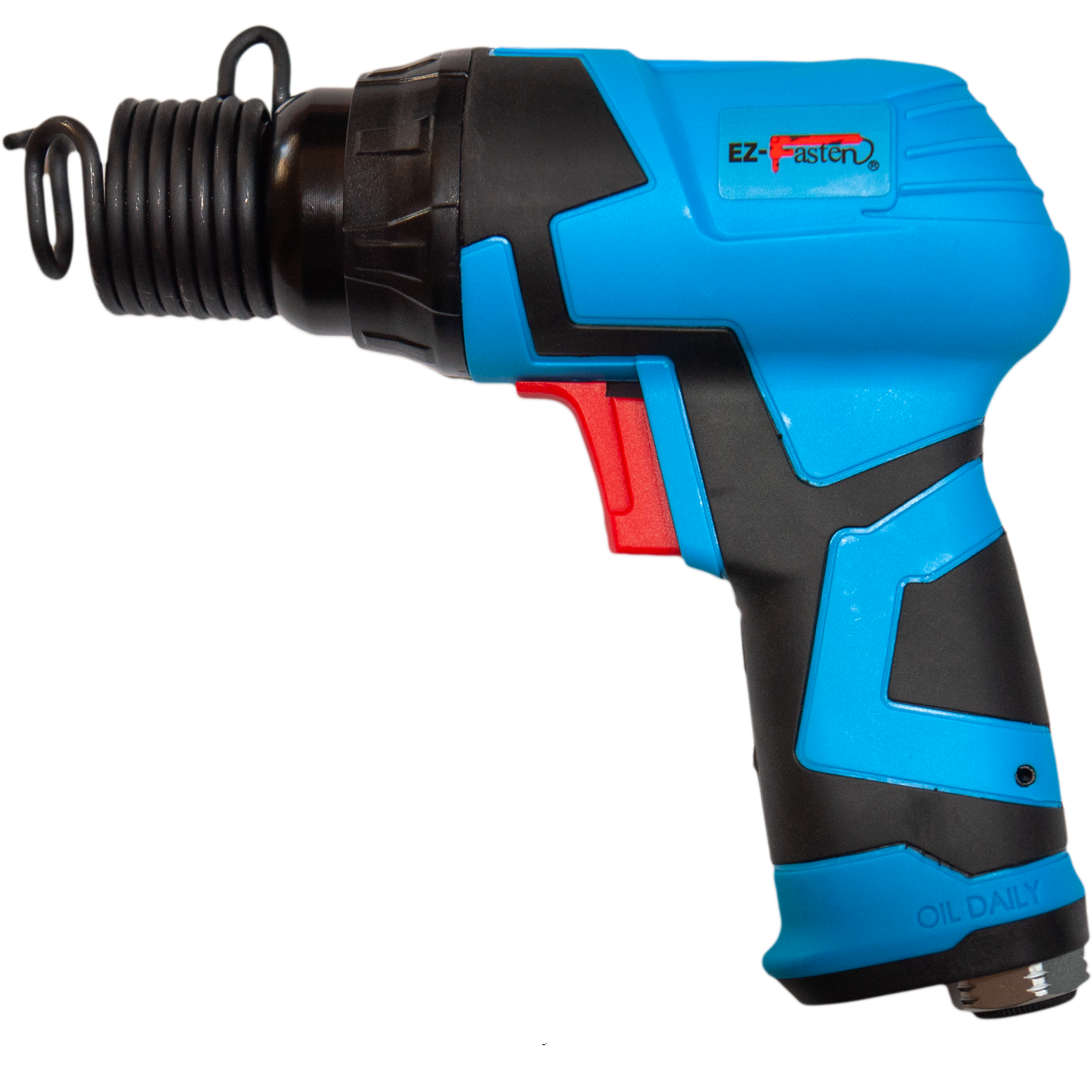 Martillo cincelador neumático. Velocidad 4500 golpes por minuto. Espiga cincel 10.2mm. Presión de trabajo 6.3Kg/cm2. Incluye juego de cinceles. Cuerpo hecho en composite lo que le hace mas ligero y robusto. Conexión rápida de bolas para los cinceles haciendo sencilla la desconexión y conexión sin esfuerzo alguno. Empuñadura hecha en bicomponente mejorando agarre y comodidad.