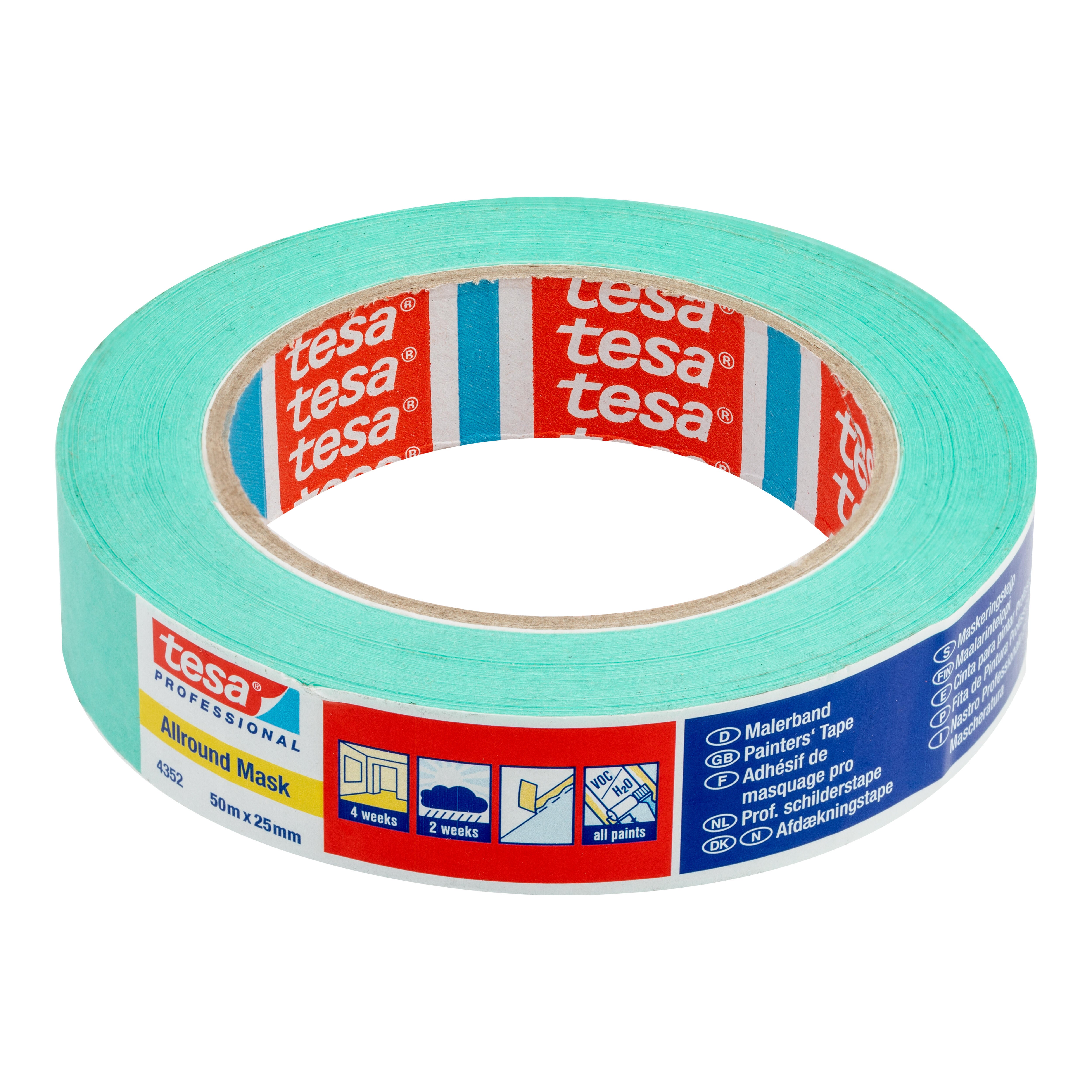 Cinta de pintor para trabajos de calidad superior, garantiza bordes de pintura nítidos y una eliminación sin residuos hasta 4 semanas en interiores y hasta 2 semanas en exteriores.