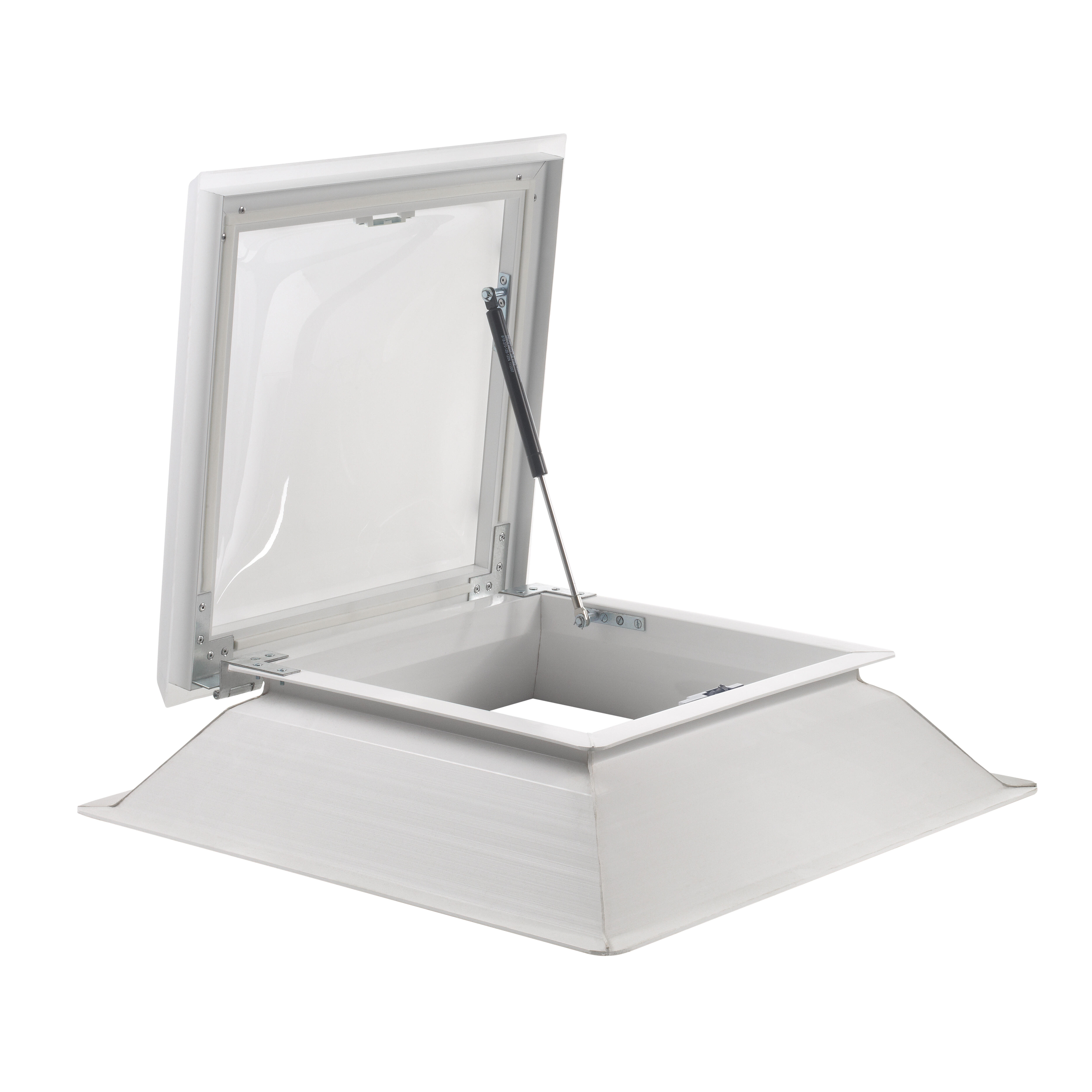 Claraboya compuesta por zócalo de PVC y cúpula de polimetilmetacrilato con sistema de apertura telescópico destinado para el acceso a la cubierta exterior. Con un ángulo de 70 grados. Este sistema no es adecuado para la ventilación. Permite la entrada de luz natural con el consiguiente ahorro energético. Especialmente indicada para cubierta plana.