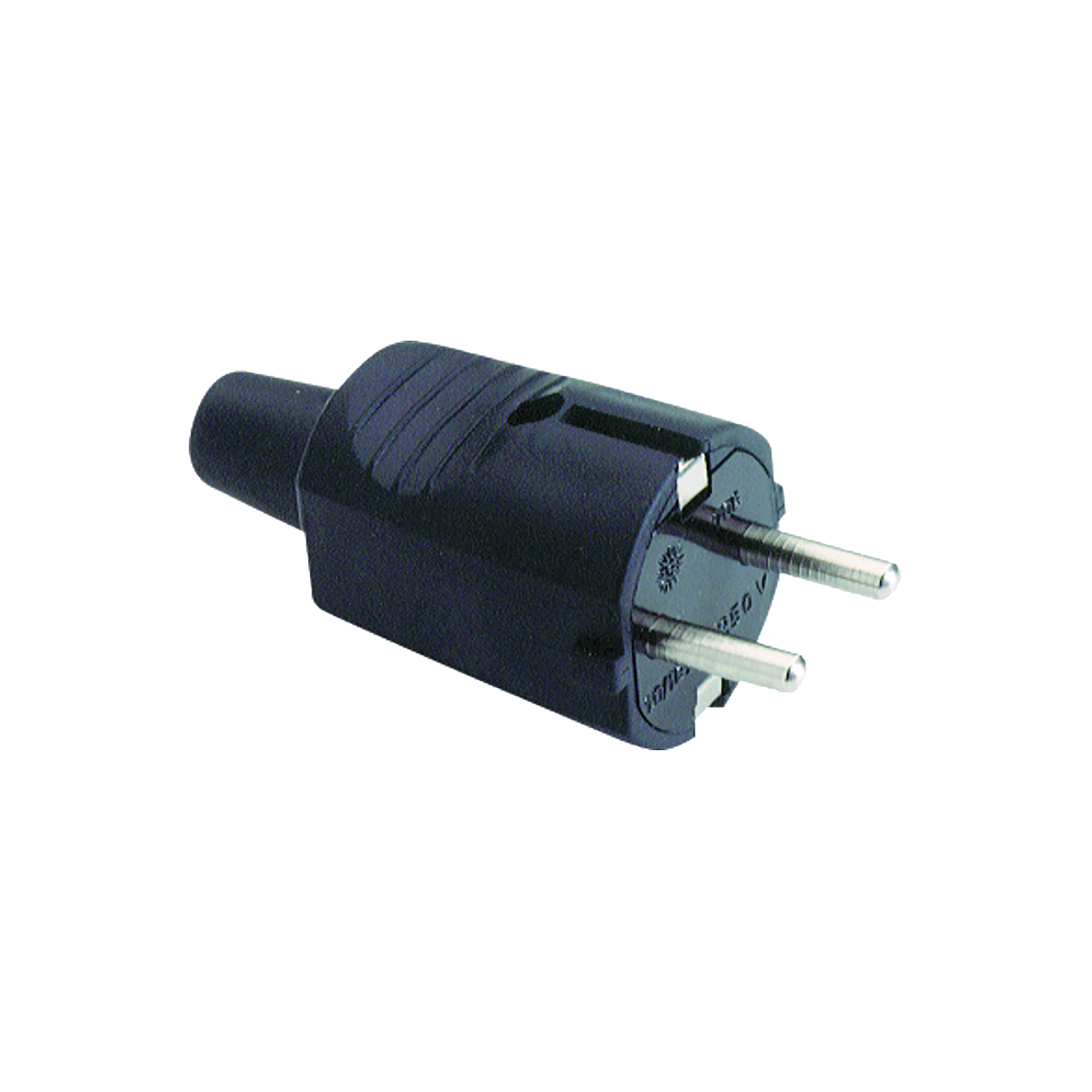 CLAVIJA CAUCHO RECTA 2 POLOS + TOMA TIERRA LATERAL 16A NEGRO