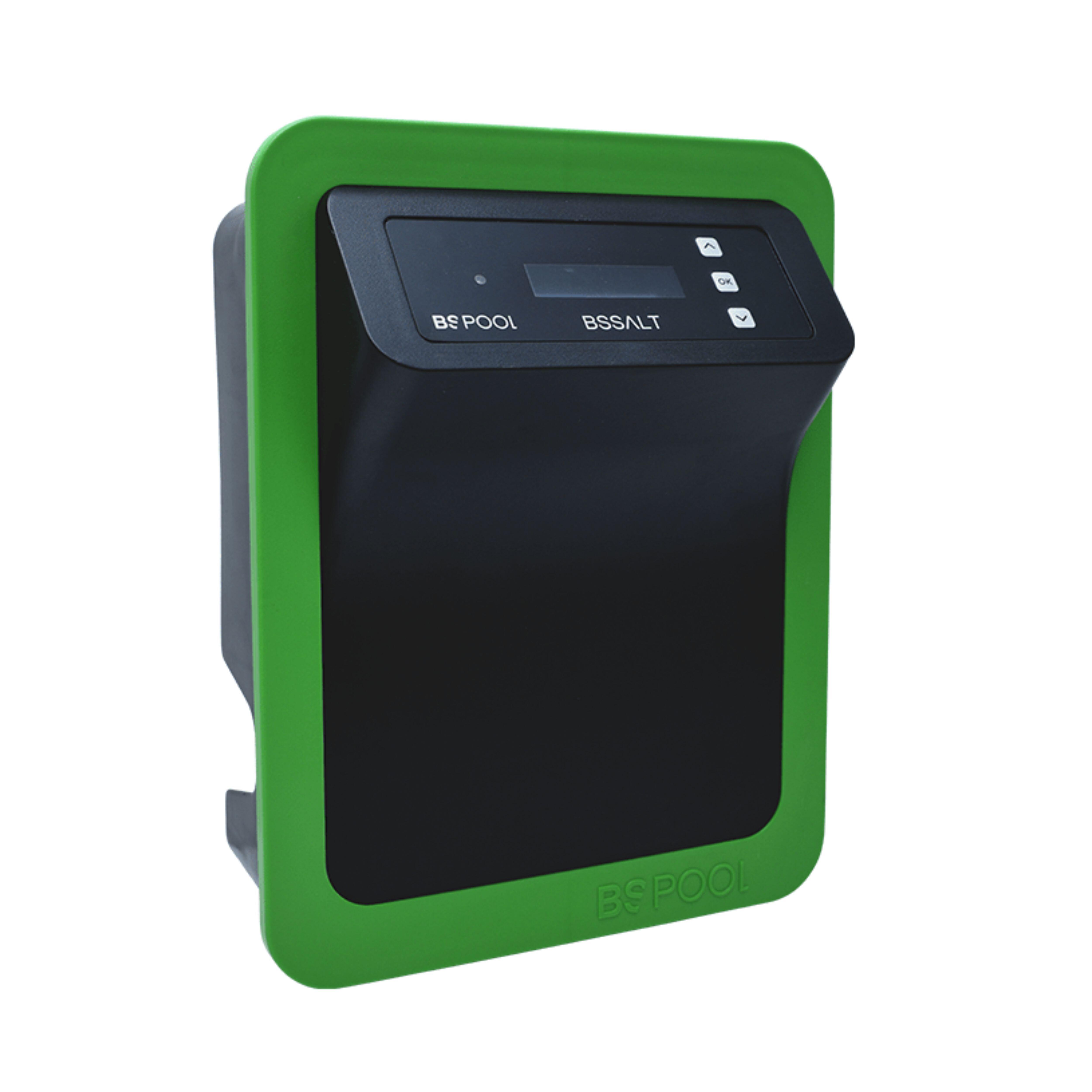 Clorador salino de la marca N-BSsalt, con una producción de cloro de 15gr/h. Para un volumen máximo de la piscina de 60m3. Duración de célula de 10.000h.