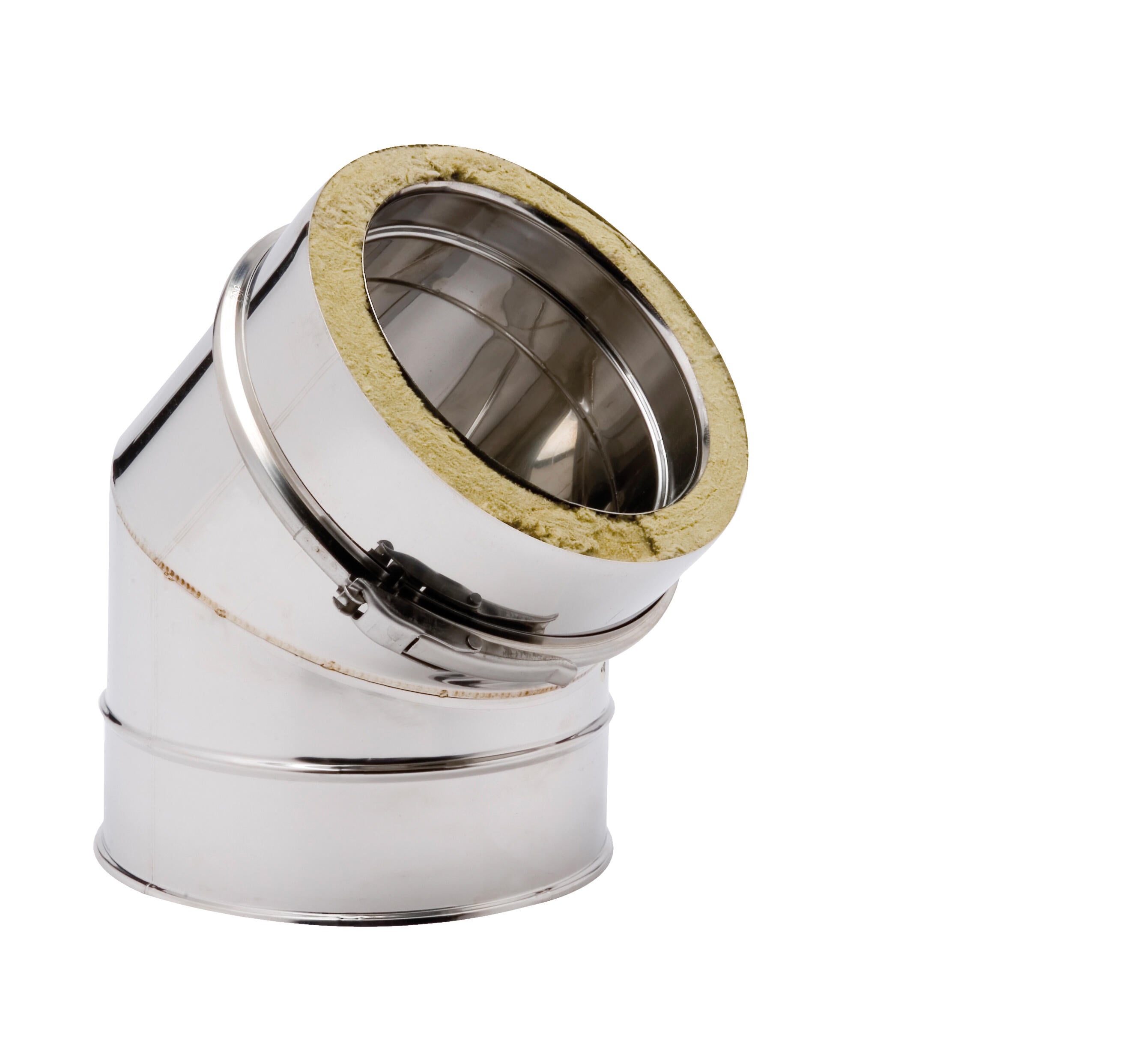 Codo 45º doble pared inoxidable 316 para la evacuación de humos de estufas de leña, inserts y hogares. Diámetro: 200 mm.