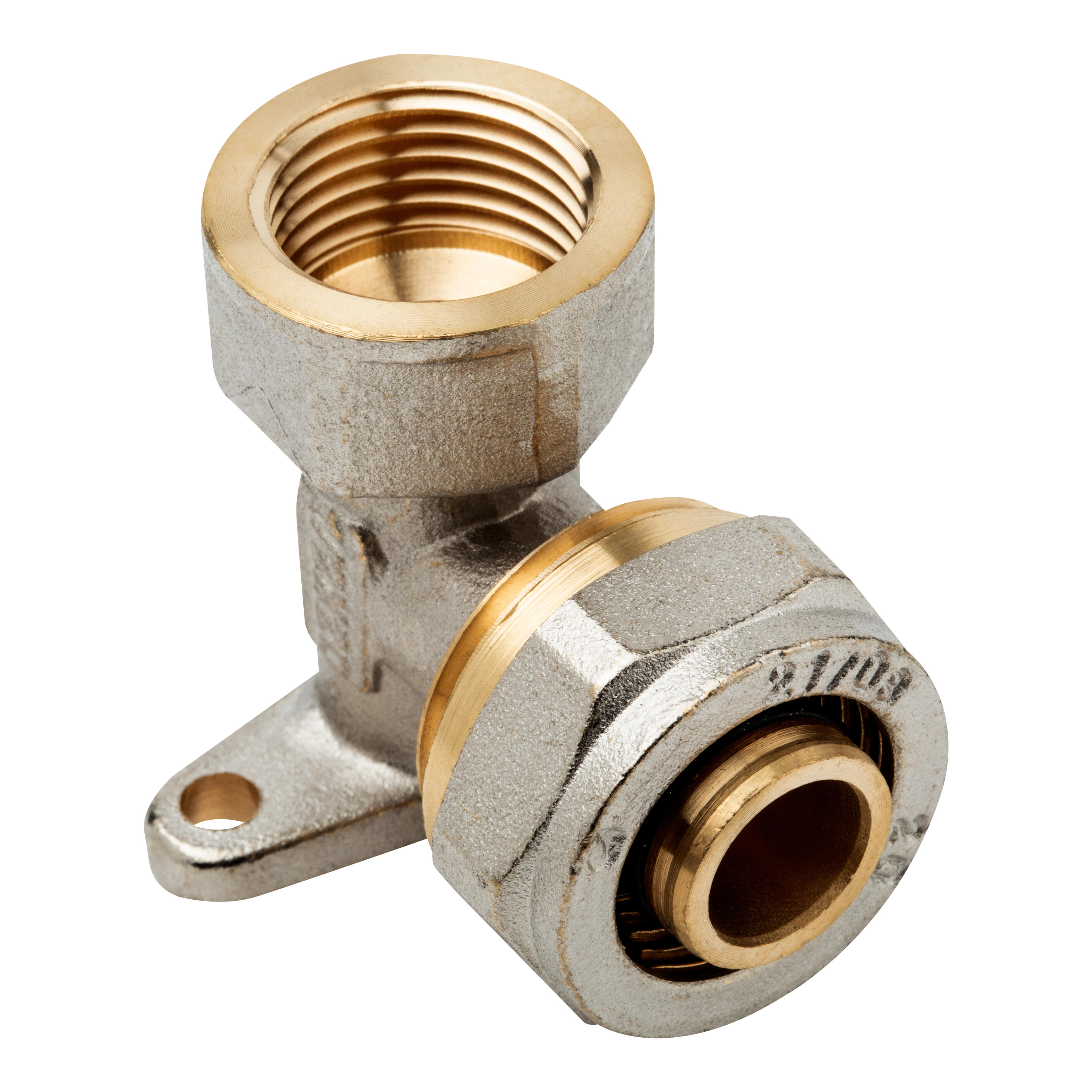 CODO 90º CON SOPORTE 20MMX1/2" COMPRESIÓN MULTICAPA